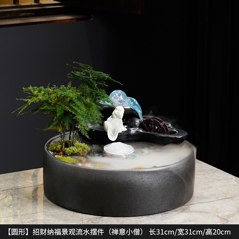 • 대형 라운드 타임 러닝 풍경 흐르는 물 장식품 젠 스님) + 분무기