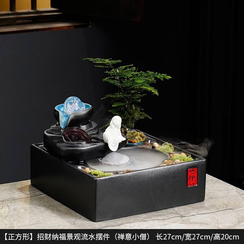 • 스퀘어 럭키 나푸 풍경 물 장식품 (선 몽크) + 분무기