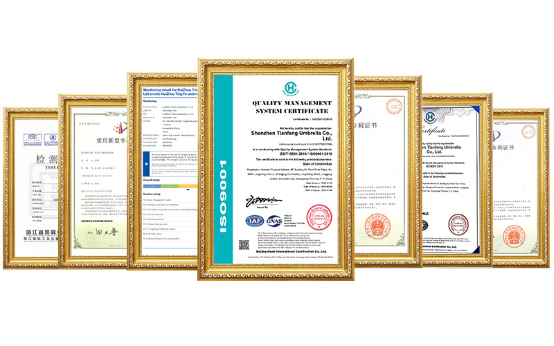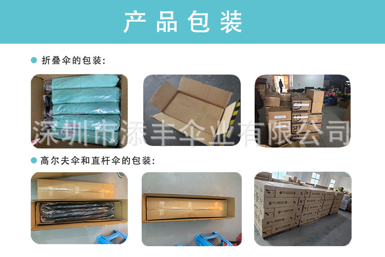 | 伞骨:两节抗风纤维骨+烤黑漆钢材骨+烤黑漆铁中棒 | 包装: | 每支雨伞入一PP袋,50支一外箱 | |
