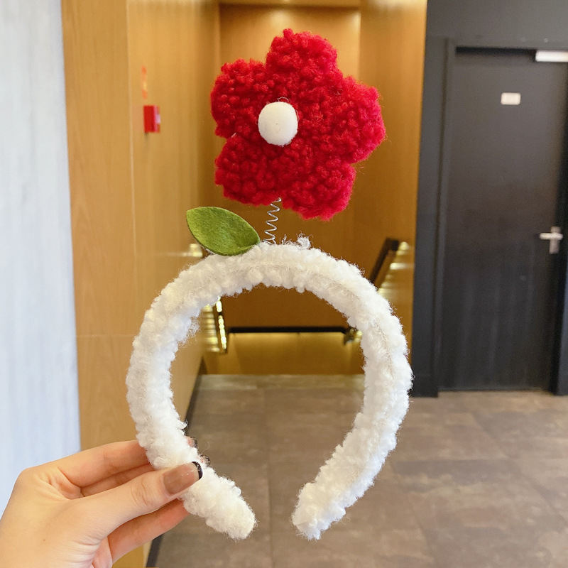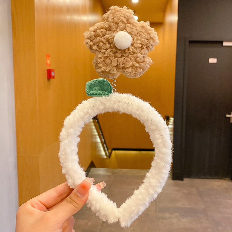 가을과 겨울 얼굴 세척 양고기 양모 귀여운 꽃 헤어밴드 여성용 플러시 미끄럼 방지 마스크 특수 머리띠 헤어 번들 헤어 클립스토어 가기