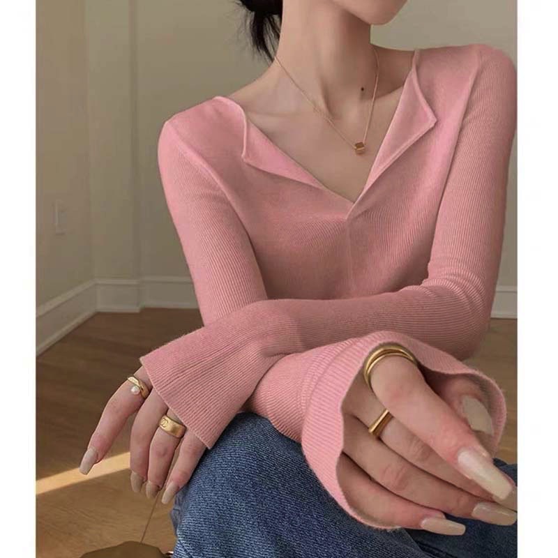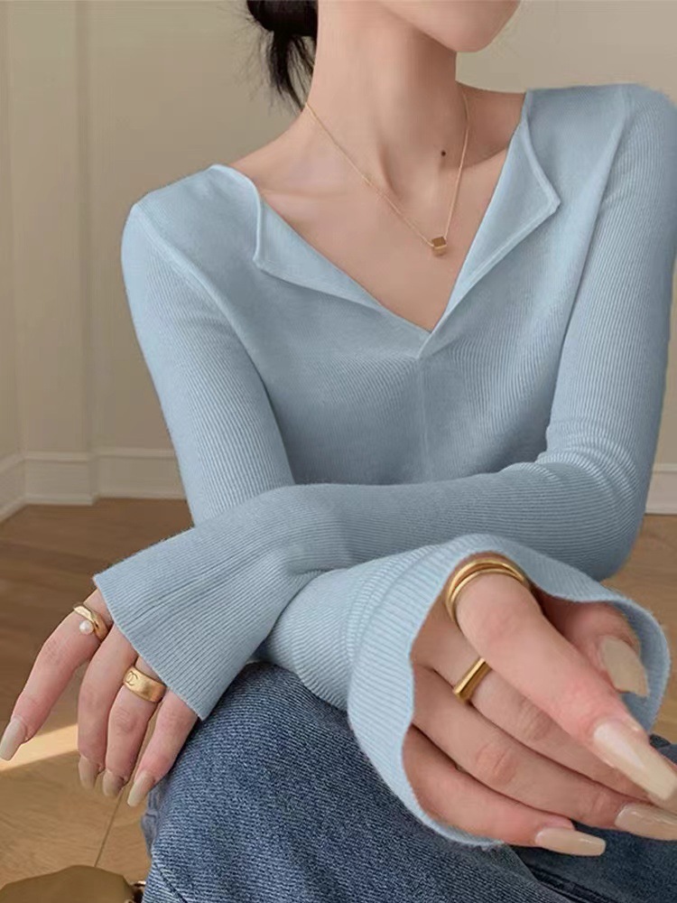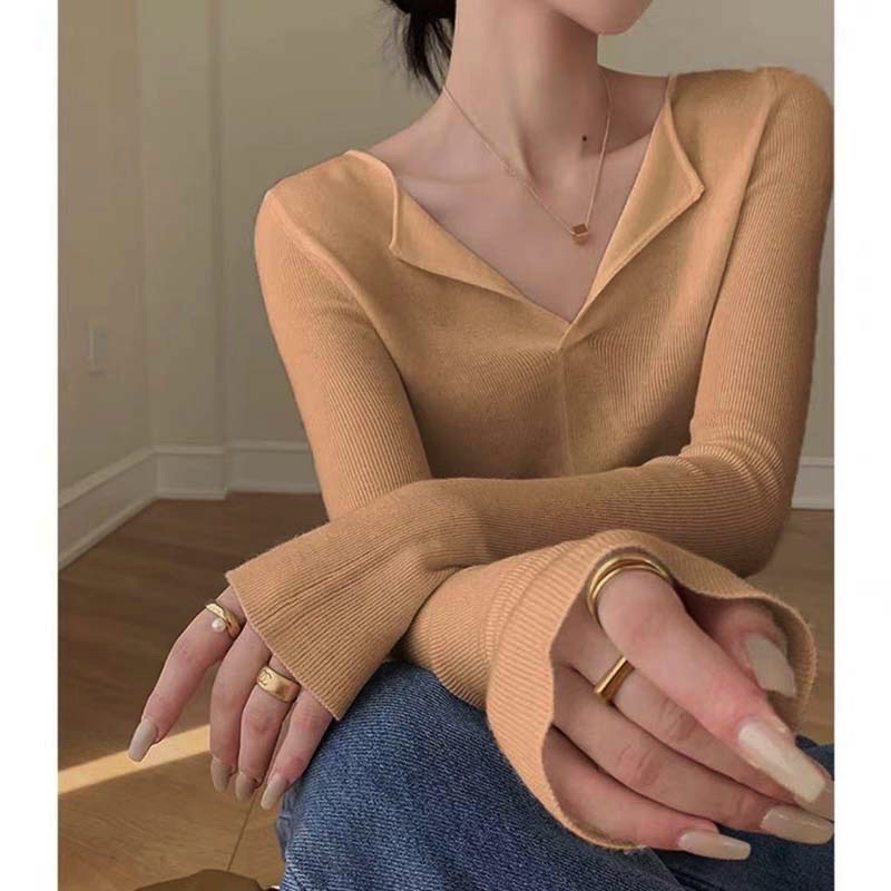 니트 베이스 셔츠 여성용 가을과 겨울 인테리어 슬림핏 슬리밍 스웨터 고급 웨스턴 스타일 패셔너블한 로우 칼라 탑