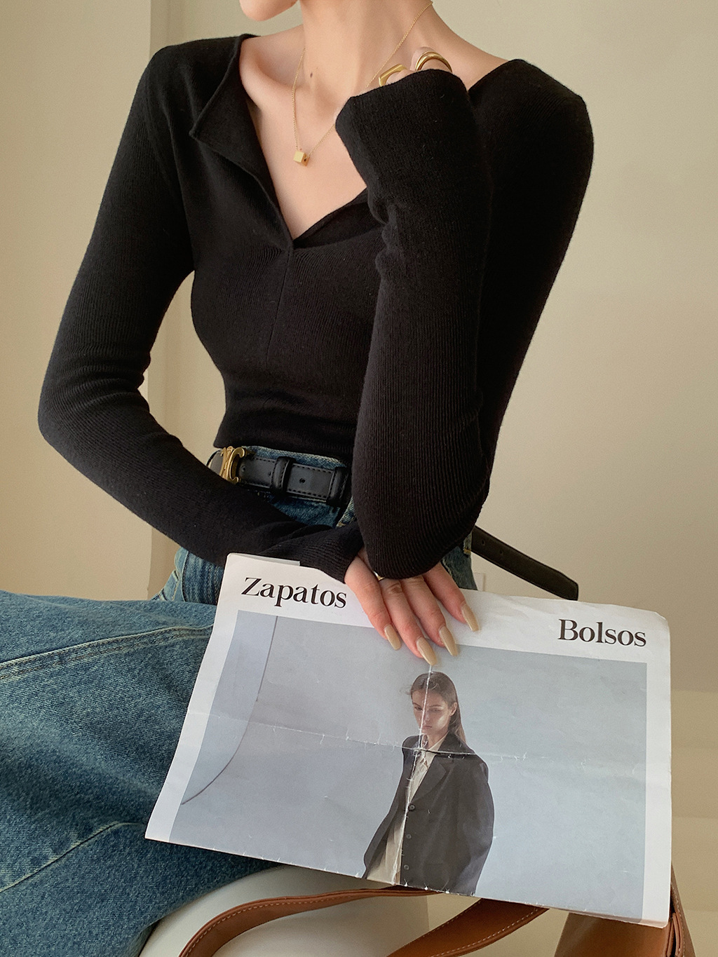 니트 베이스 셔츠 여성용 가을과 겨울 인테리어 슬림핏 슬리밍 스웨터 고급 웨스턴 스타일 패셔너블한 로우 칼라 탑스토어 가기