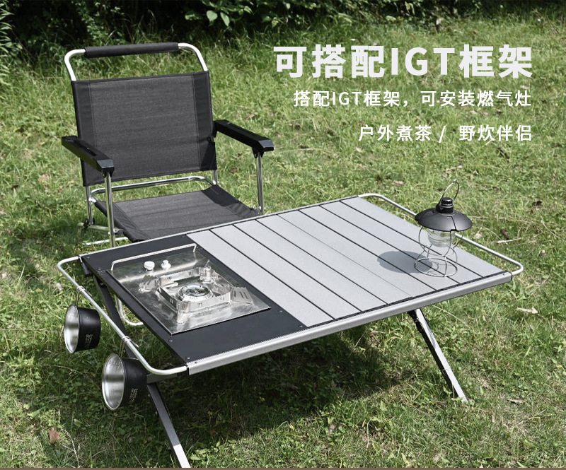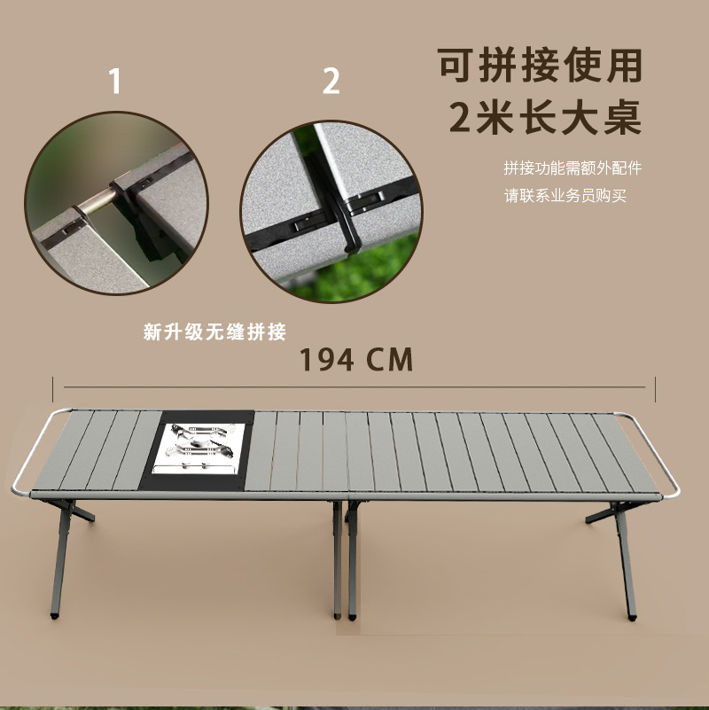 사용자 정의 알루미늄 합금 계란 롤 테이블 의자 캠핑 장비 캠핑 용품 휴대용 피크닉 테이블 야외 접이식 테이블스토어 가기