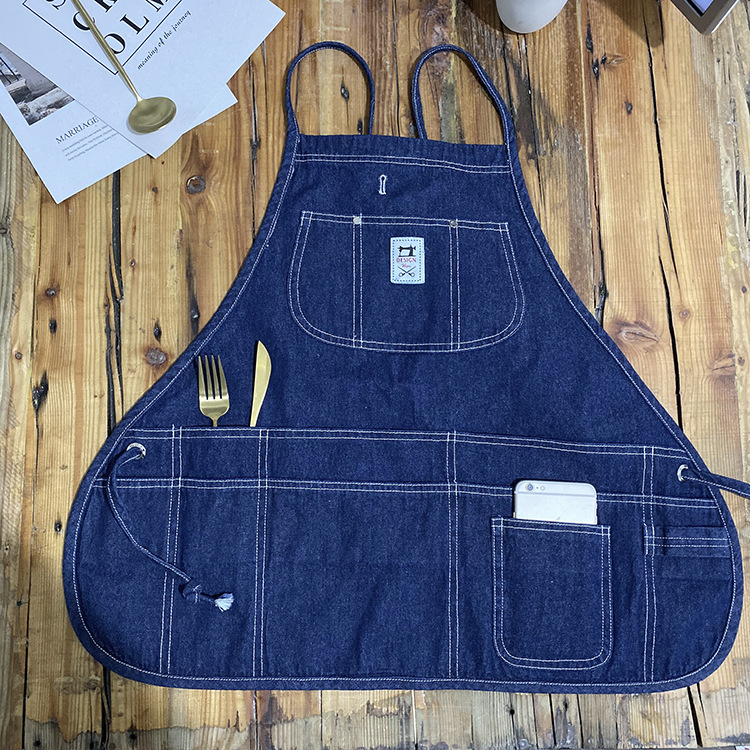 일본과 한국식 짧은 레스토랑 패션 데님 커버 올 앞치마 바리 스타 네일 살롱 우유 차 가게 메이크업 아티스트 바지