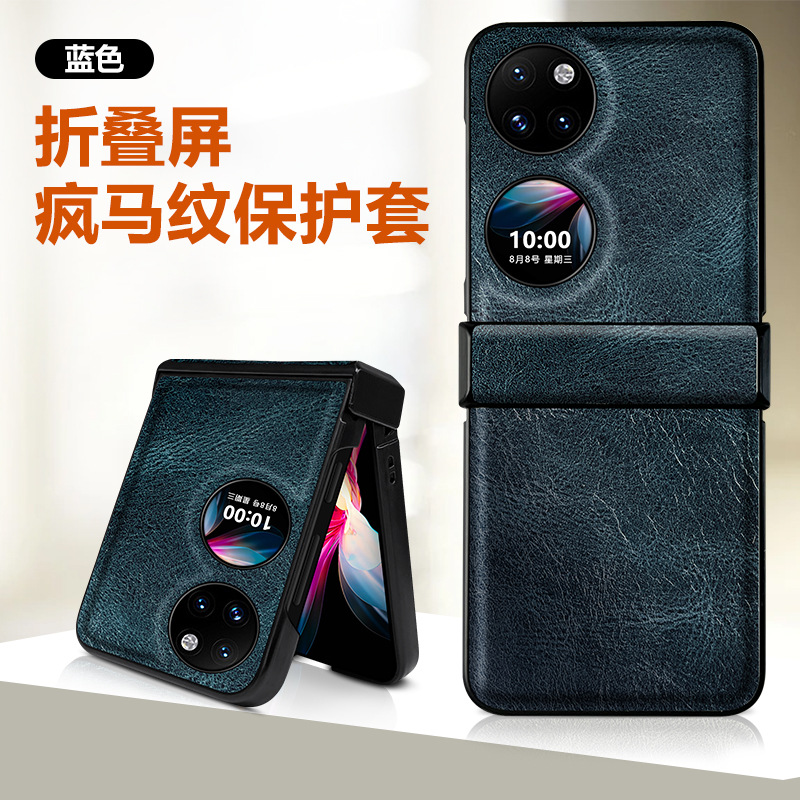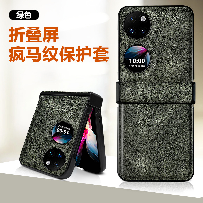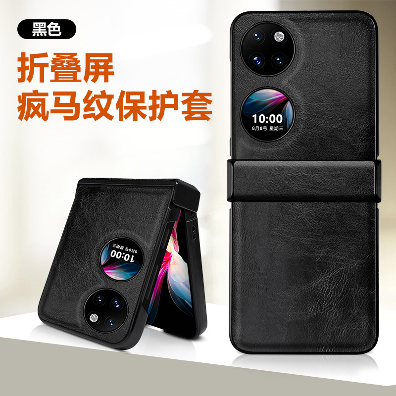 화웨이 pocket2 전화 케이스 접는 가죽 미친 말 패턴 화웨이 p50pocket 전화 케이스에 적합스토어 가기