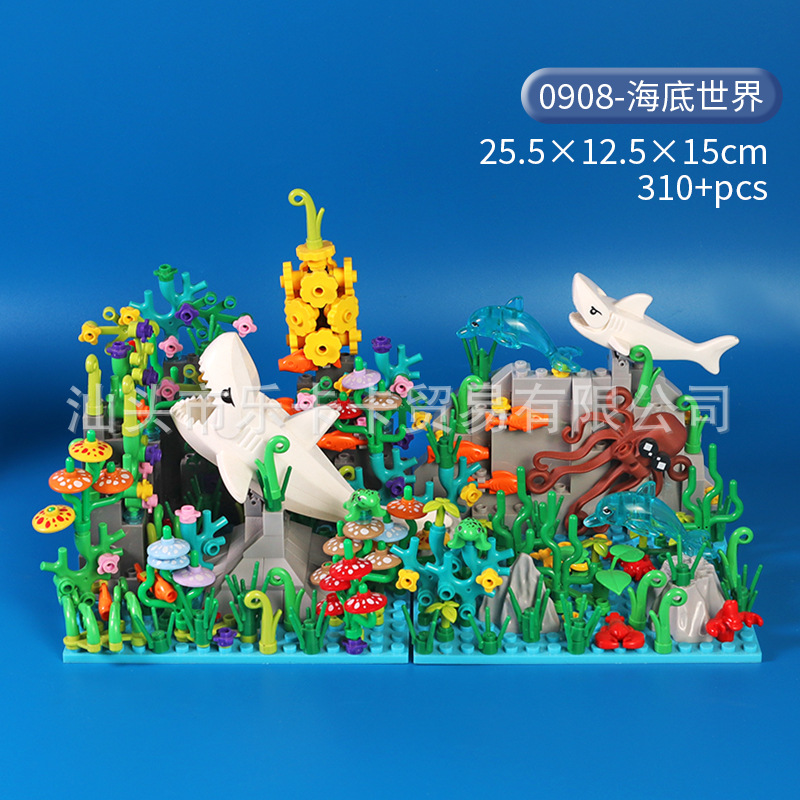 수중 세계 작은 동정 빌딩 블록 데스크탑 어항 장식품 어린이 DIY 퍼즐 조립 모델 남성스토어 가기