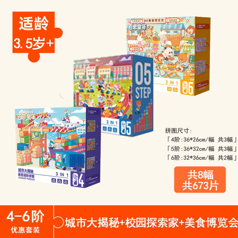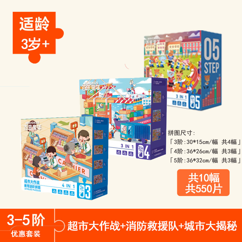 • 【신상 조립 퍼즐】 4단계 - 도시 대탐험 【3.5세+/3세트/48-63조각】