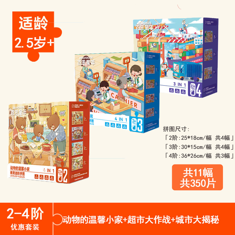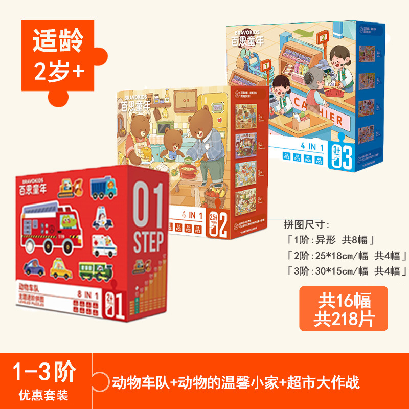 • 【3개 묶음 할인】 1-3단계 - [2세+/16컷 그림/218조각]