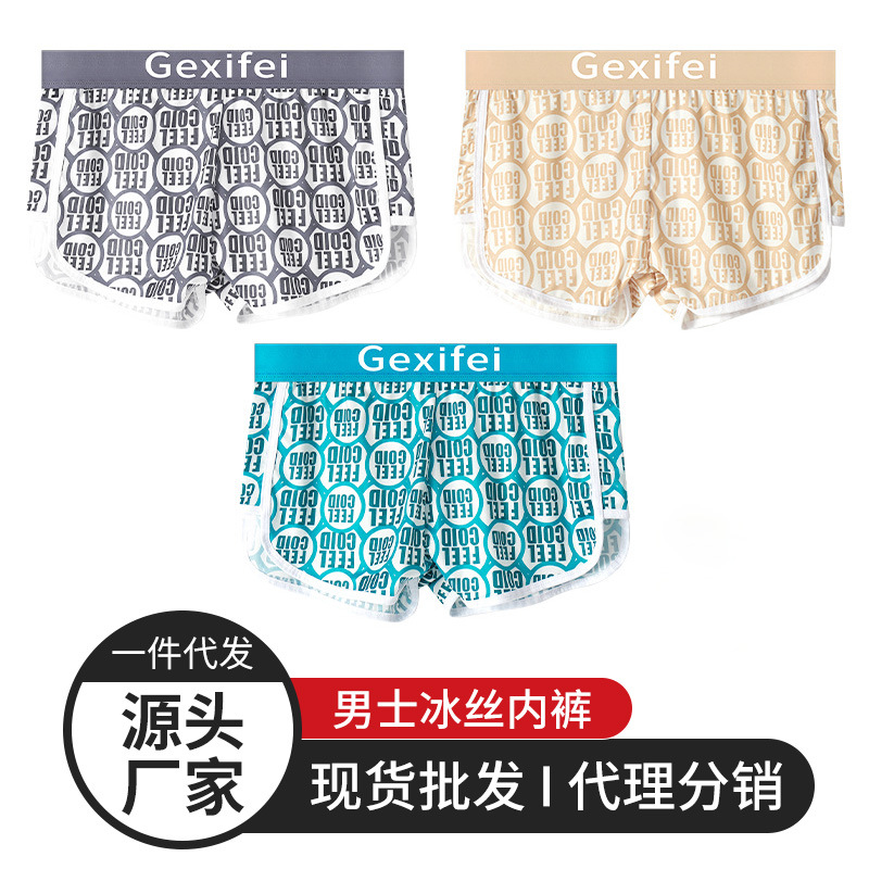 新款潮牌冰丝男士内裤男生平角裤抑菌潮流个性四角短裤头内裤批发¥8立即采购