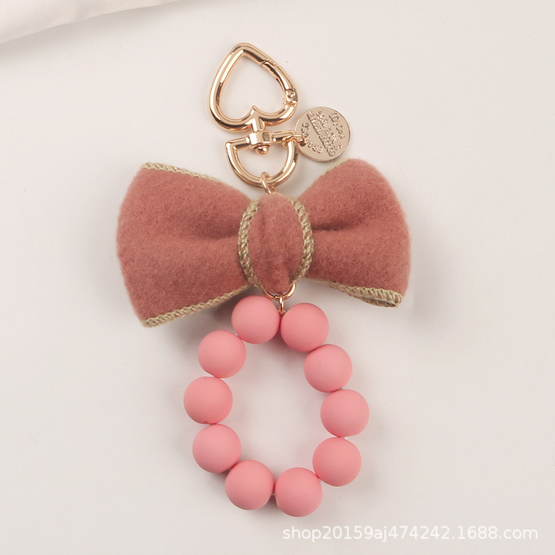 새로운 활 자동차 키 체인 펜던트 창조적 인 컬러 비드 체인 액세서리 복숭아 심장 금속 버클 백 장식