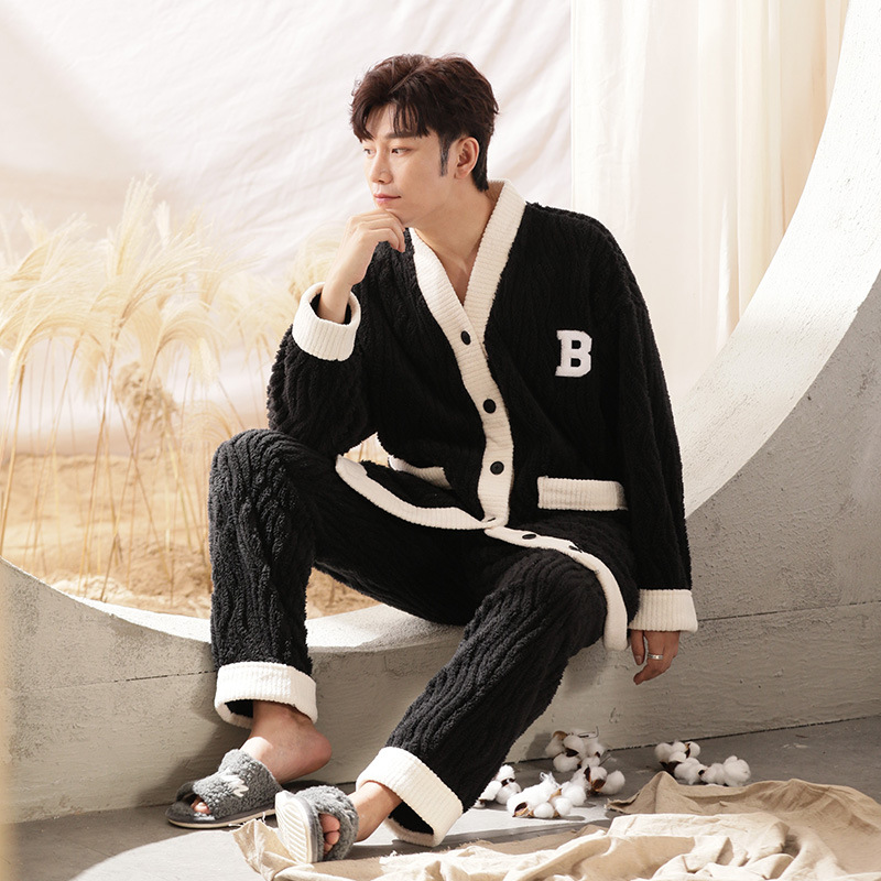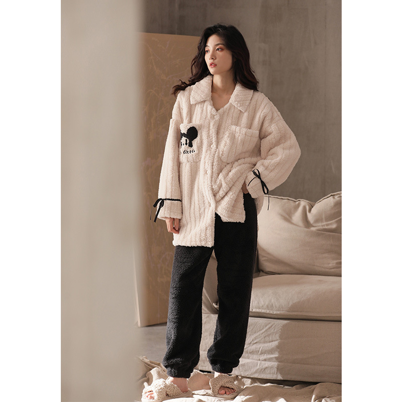 커플 산호 양털 만화 귀여운 겨울 따뜻한 기모 2022 새로운 커플 홈 옷은 세트 밖에서 착용 할 수 있습니다스토어 가기