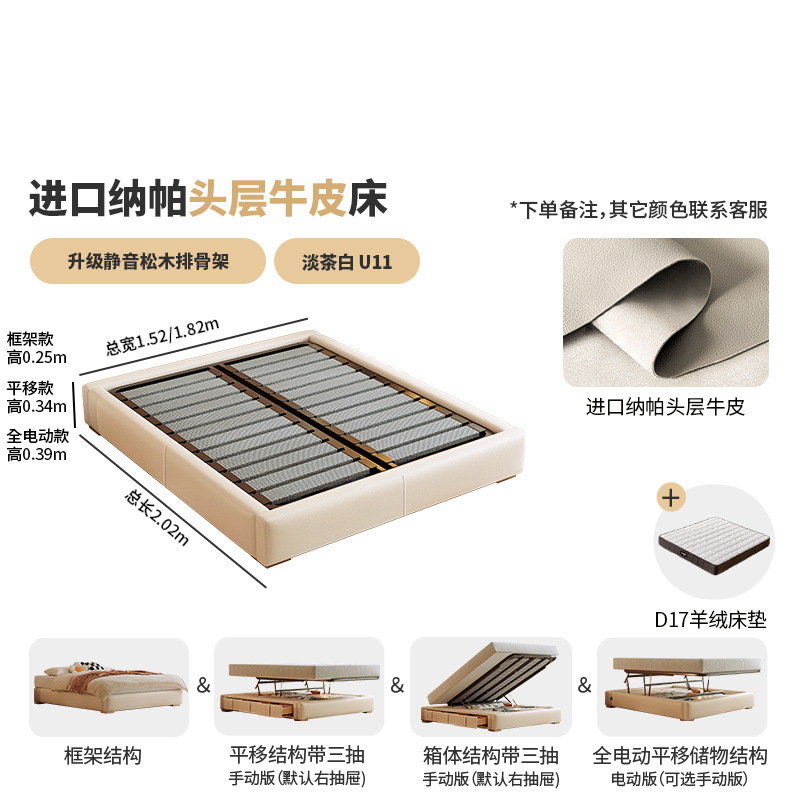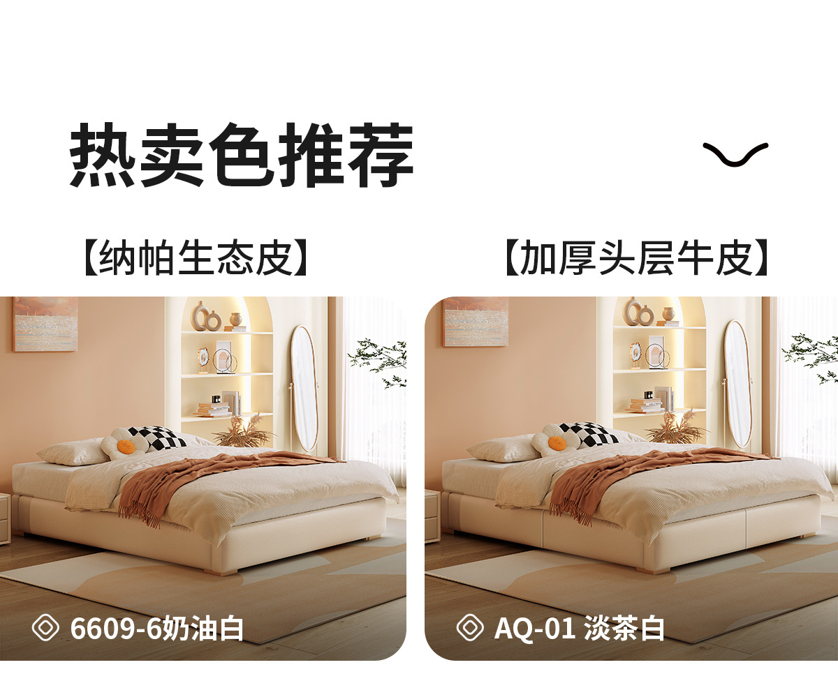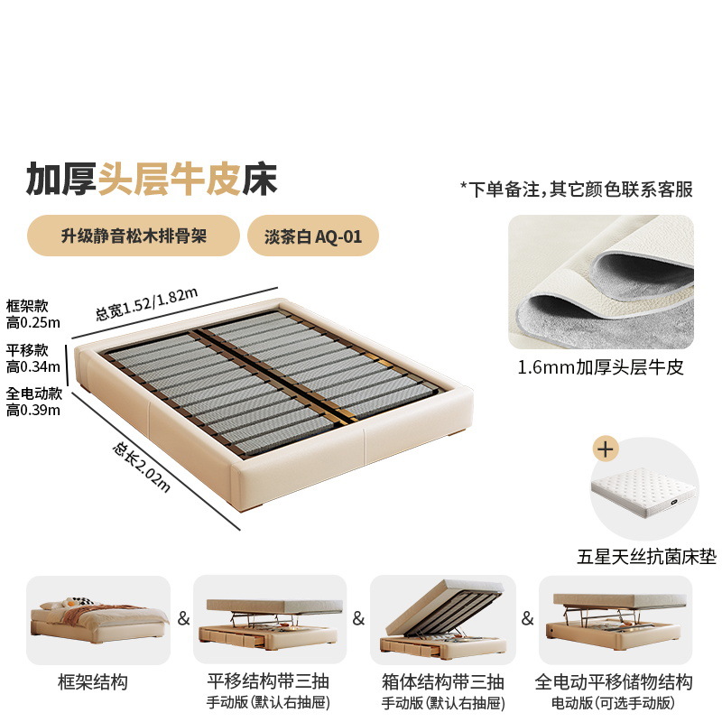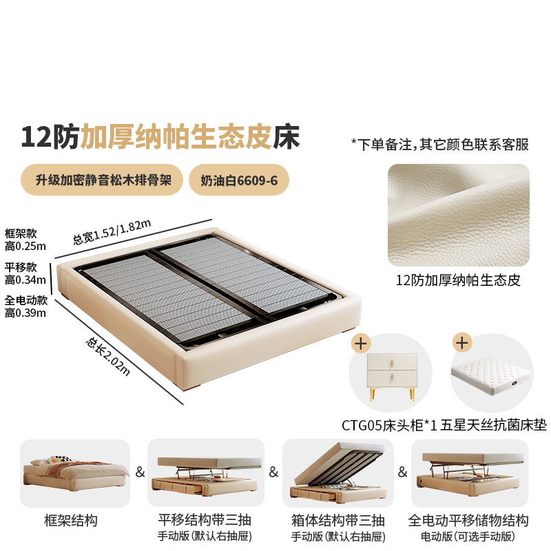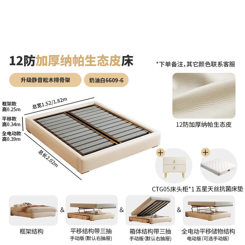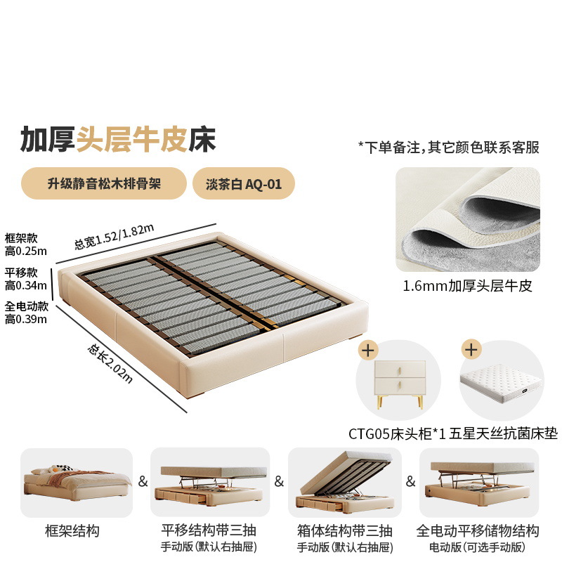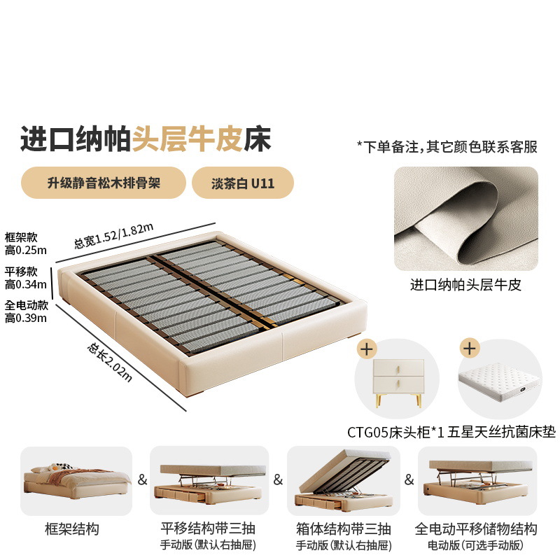• 나파 1층 소가죽 + 5성 항균 매트리스 + 침대 옆 탁자*1/업그레이드된 사일런트 립 프레임