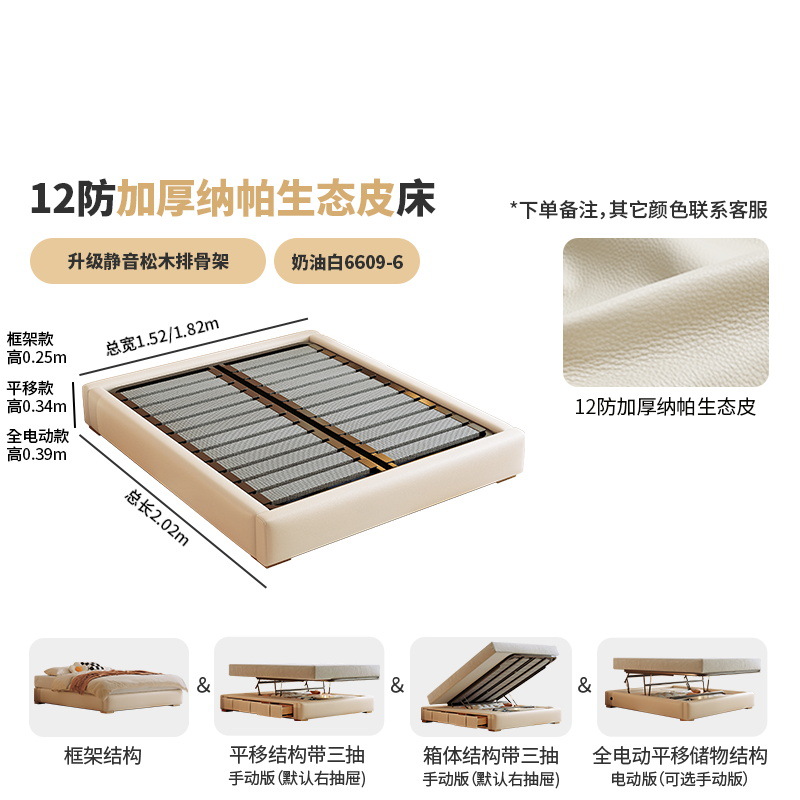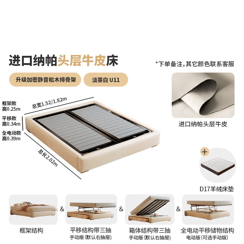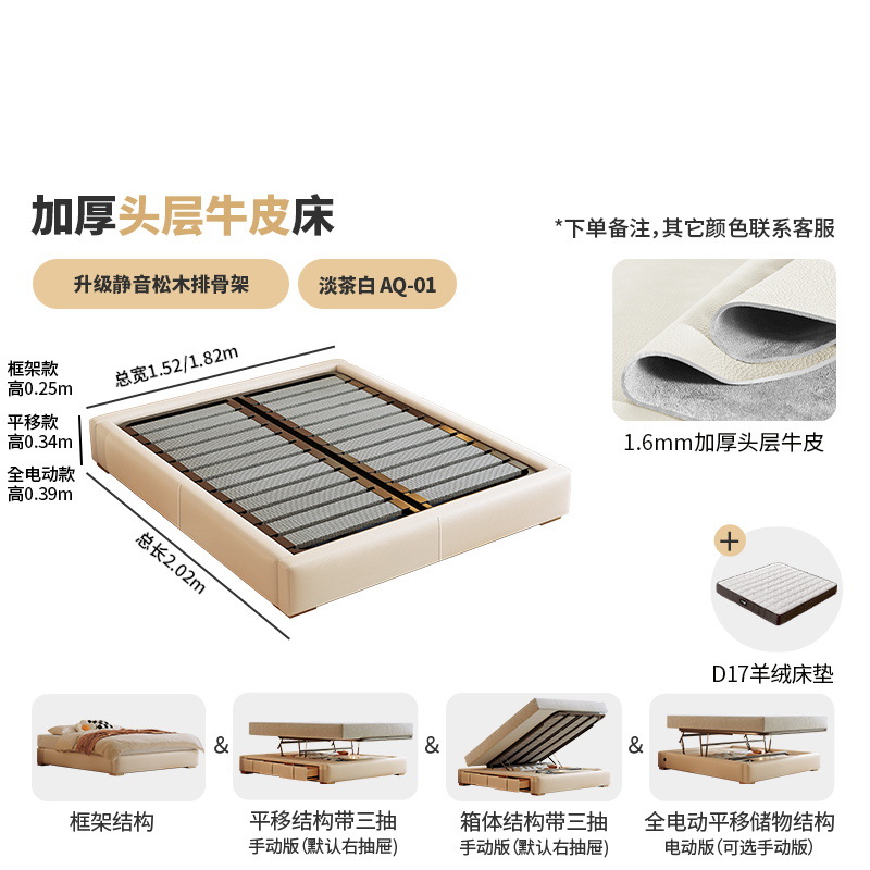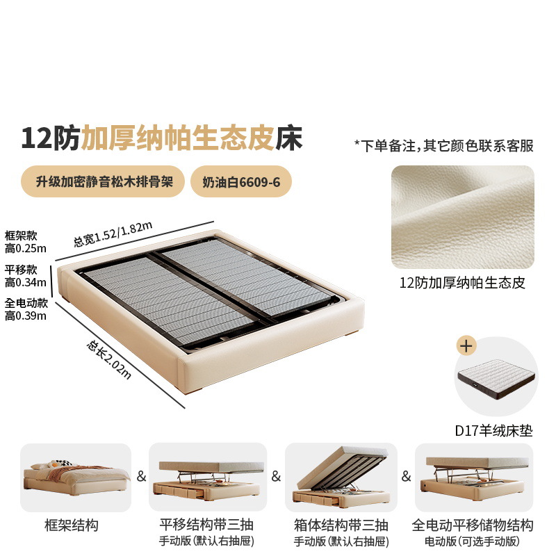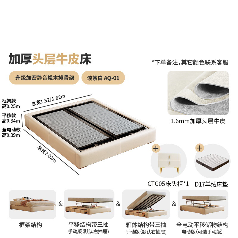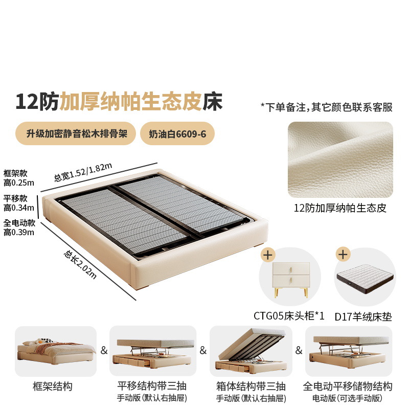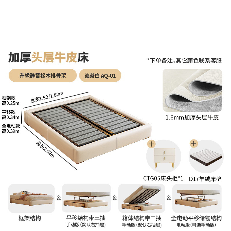 • 나파 1층 소가죽 + 5성 항균 매트리스 + 침대 옆 탁자*1/업그레이드된 사일런트 립 프레임