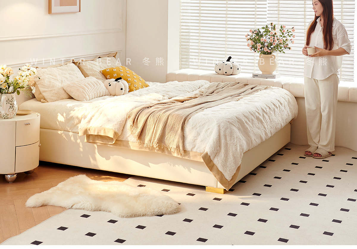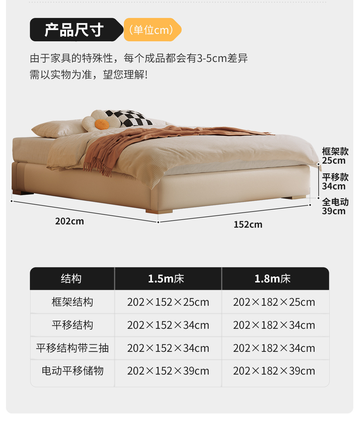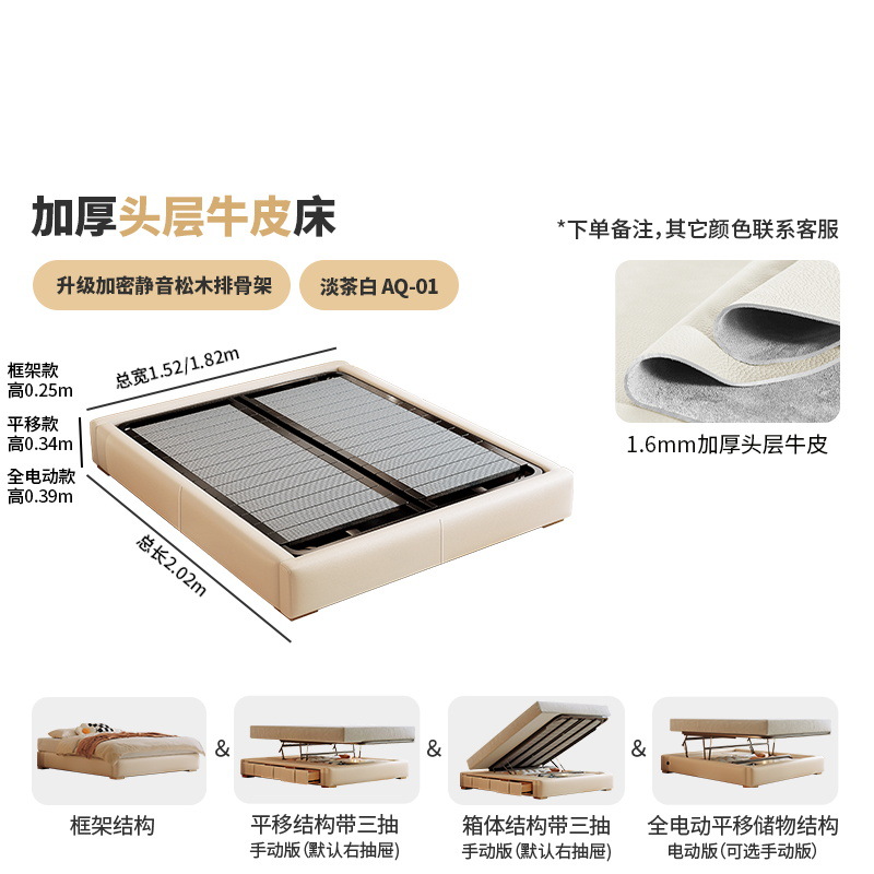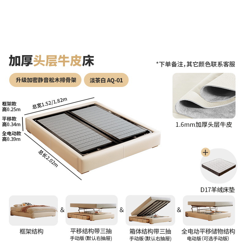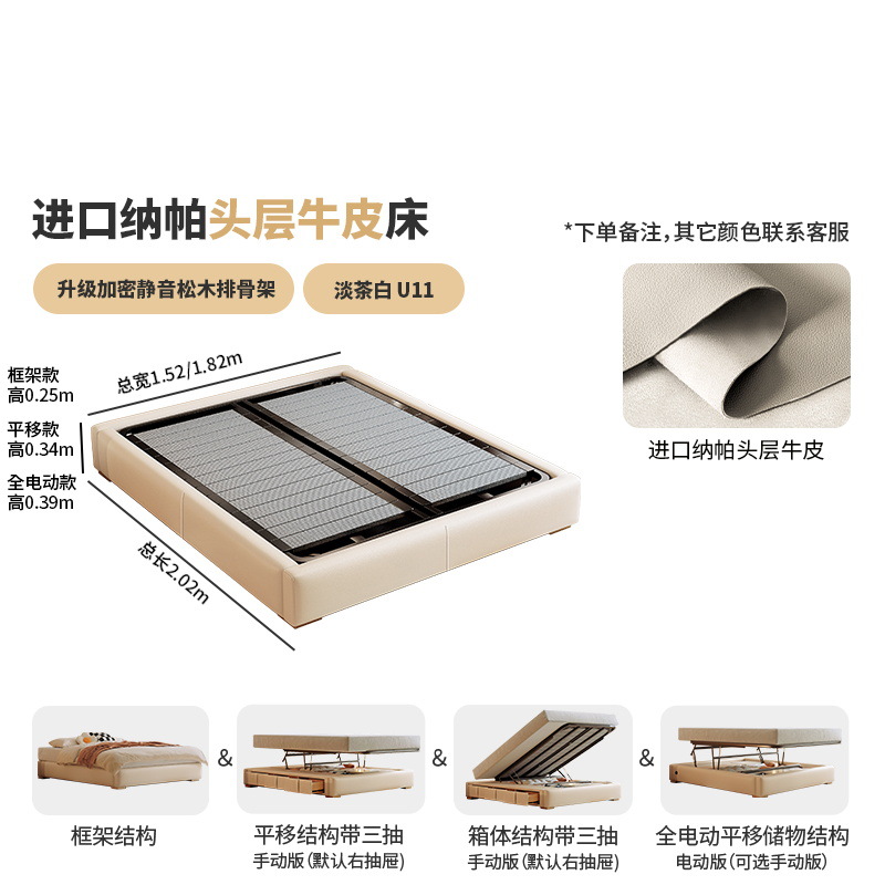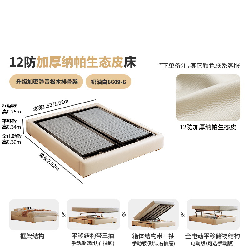 • 나파 1층 소가죽 + 5성 항균 매트리스 + 침대 옆 탁자*1/업그레이드된 사일런트 립 프레임