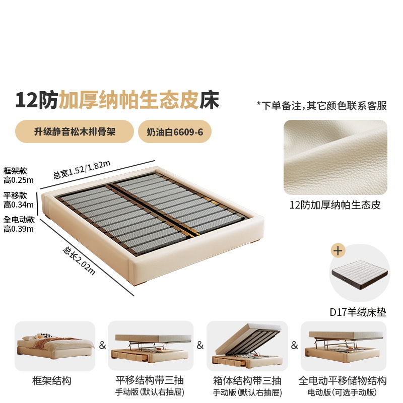 • 친환경 가죽 + D17 매트리스 + 수납장 * 1 / 업그레이드된 저소음 지지대