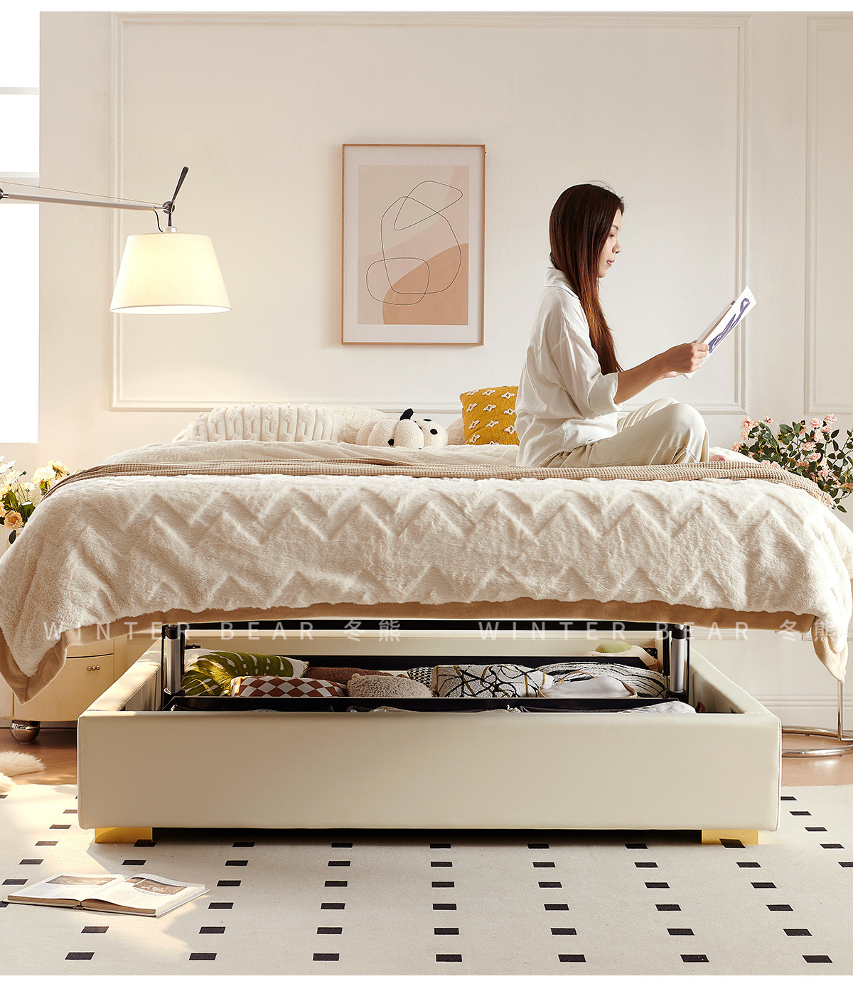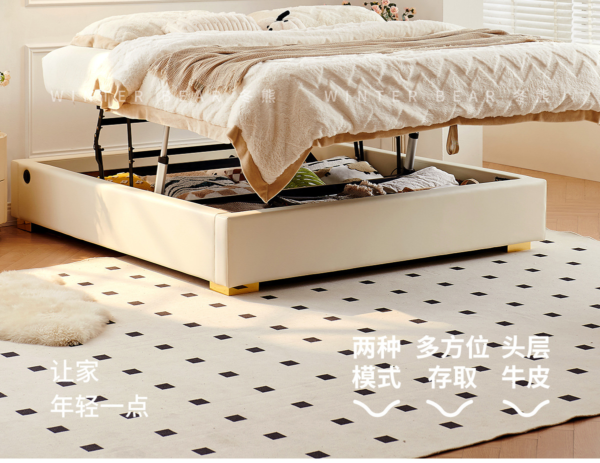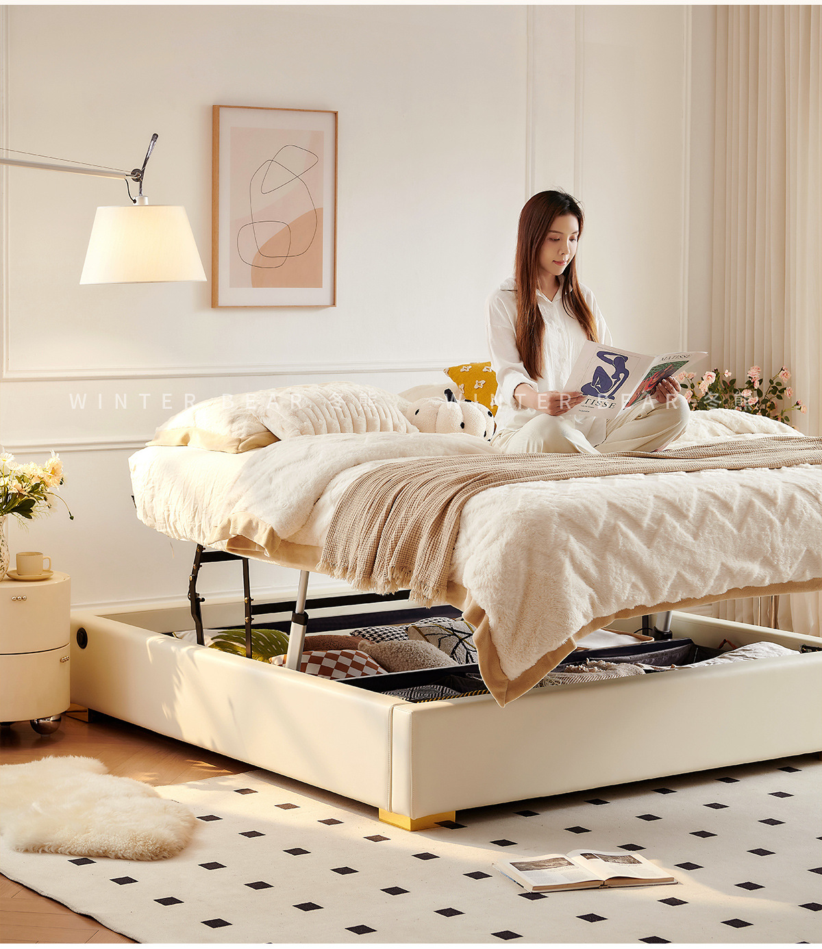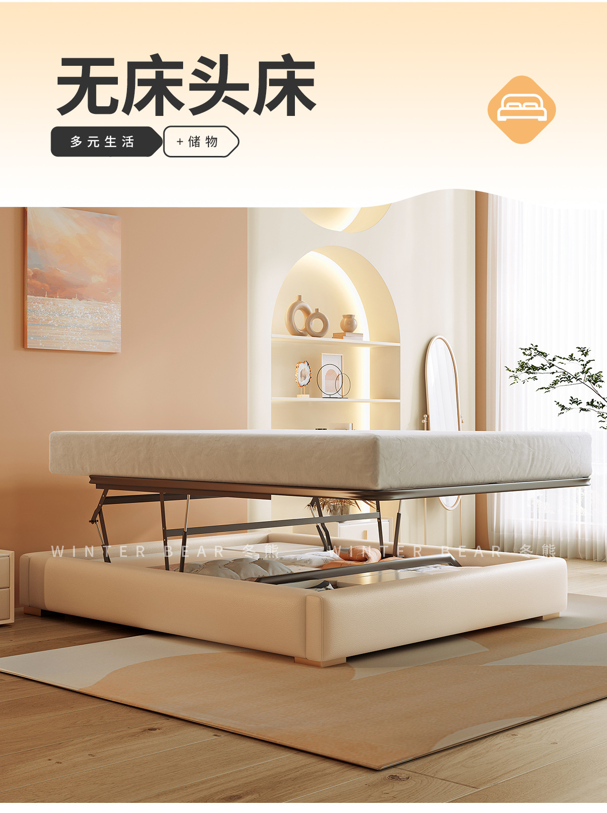 리프팅 침대 프레임 작은 아파트 다다미 라이트 럭셔리 1.8m 침대 더블 스토리지 하이 박스 가죽 비 침대 옆 다기능 침대스토어 가기