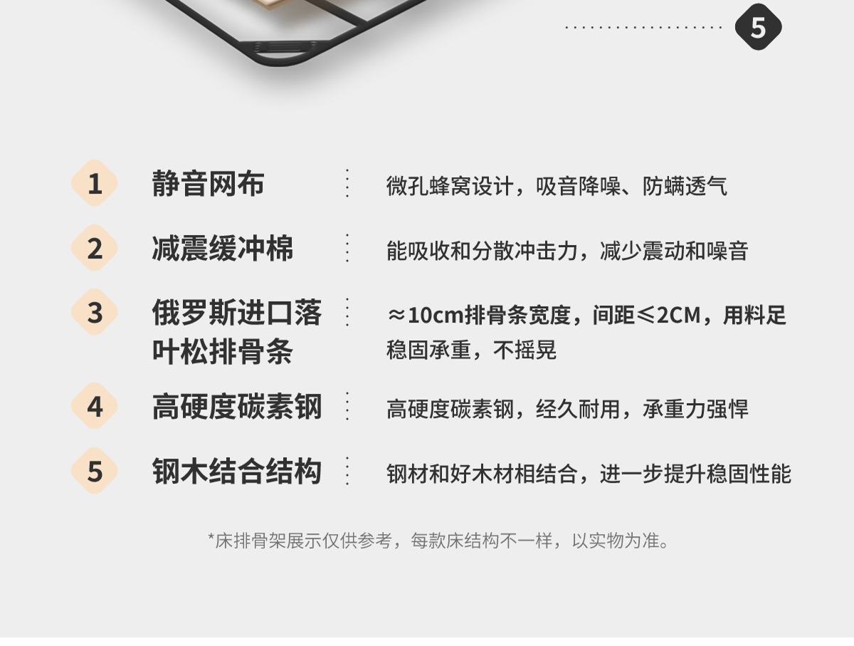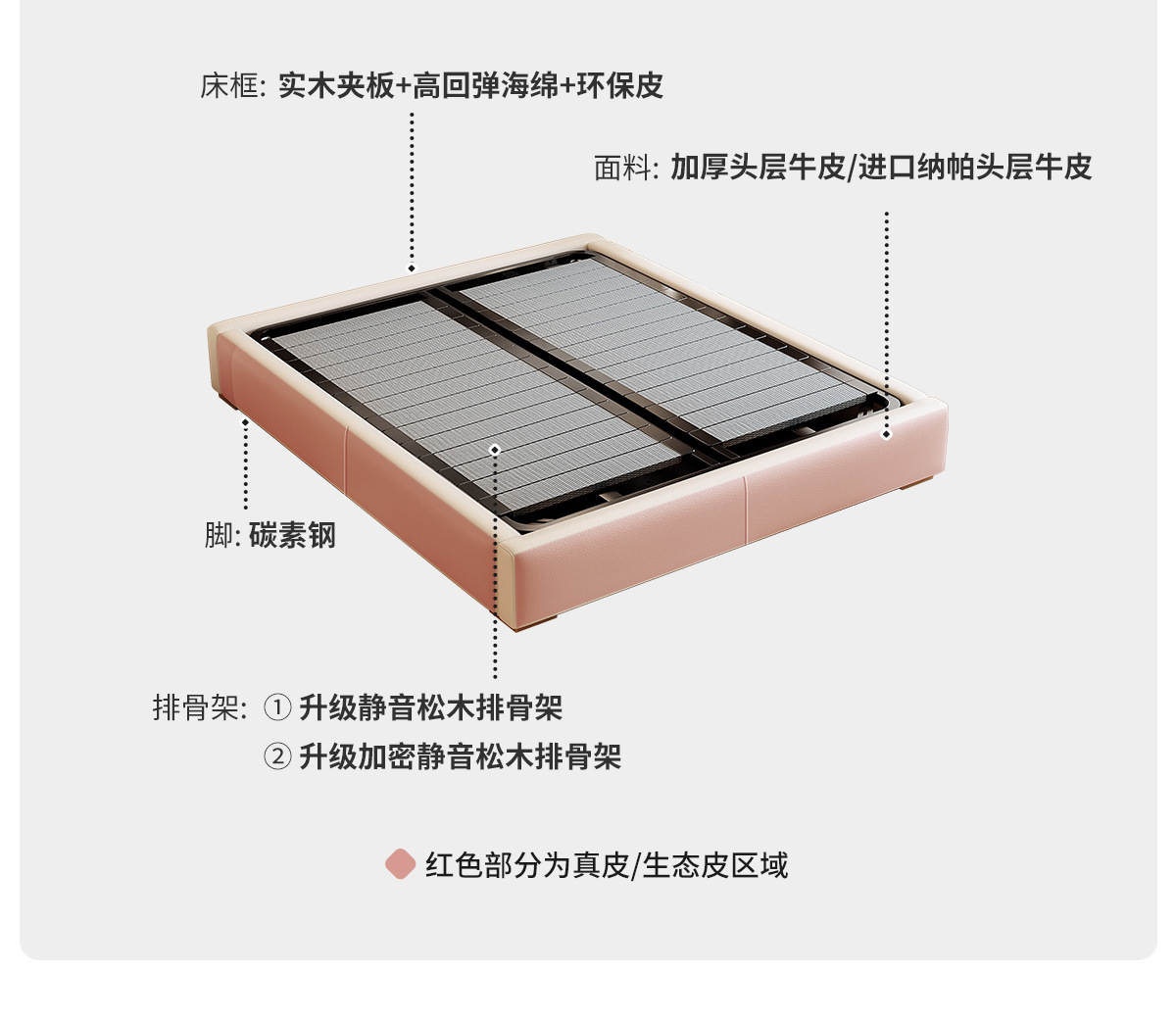 • 1층 소가죽 + 5성 항균 매트리스 + 캐비닛 * 1/암호화된 무소음 뼈대