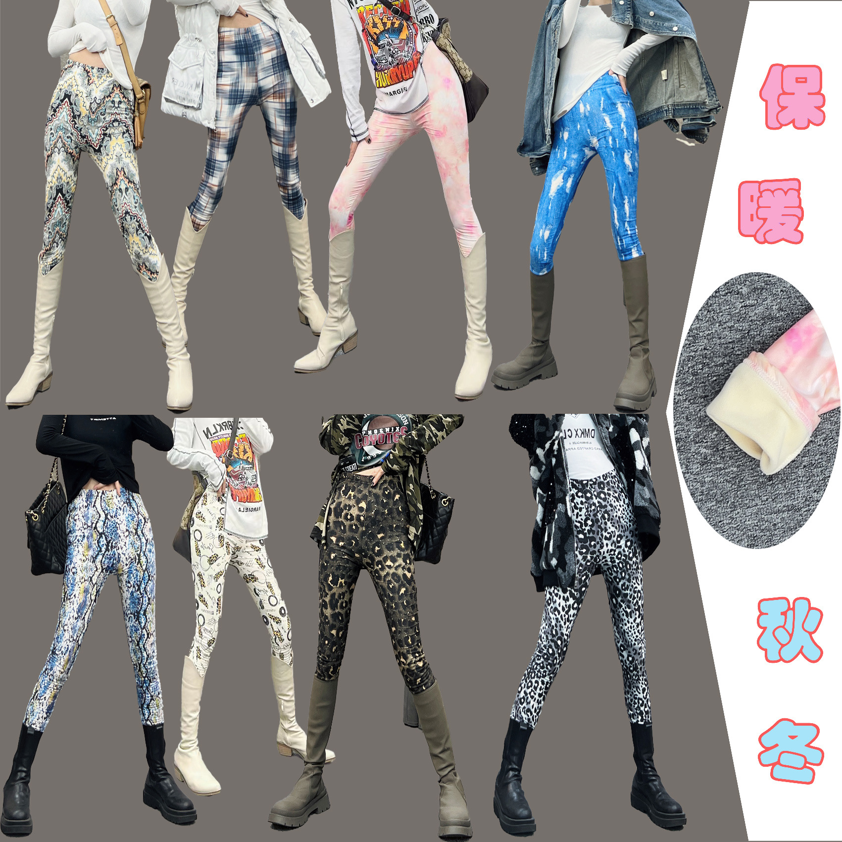 두꺼운 기모 따뜻한 여성의 인쇄 바지 가을과 겨울 인쇄 면 바지 플러스 사이즈 높은 탄성 착용스토어 가기