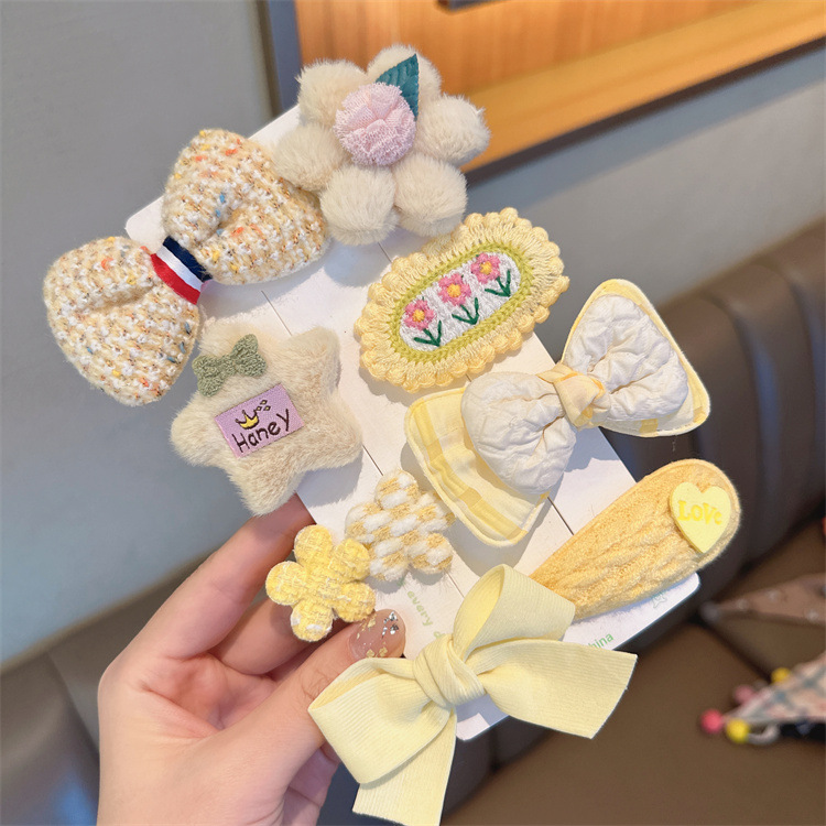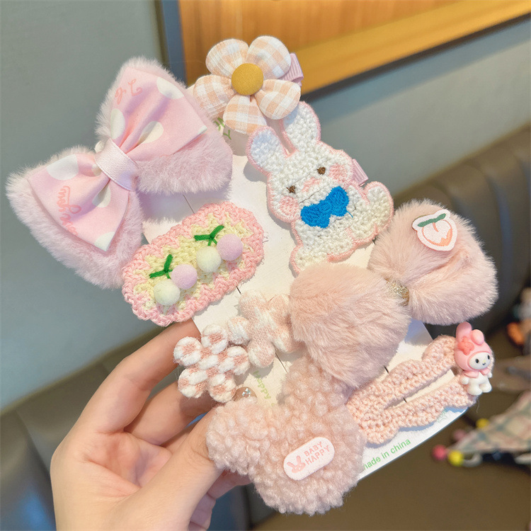 한국 어린이 가을과 겨울 양모 만화 머리핀 모피 활 머리핀 귀여운 소녀의 꽃 사이드 클립 BB 클립