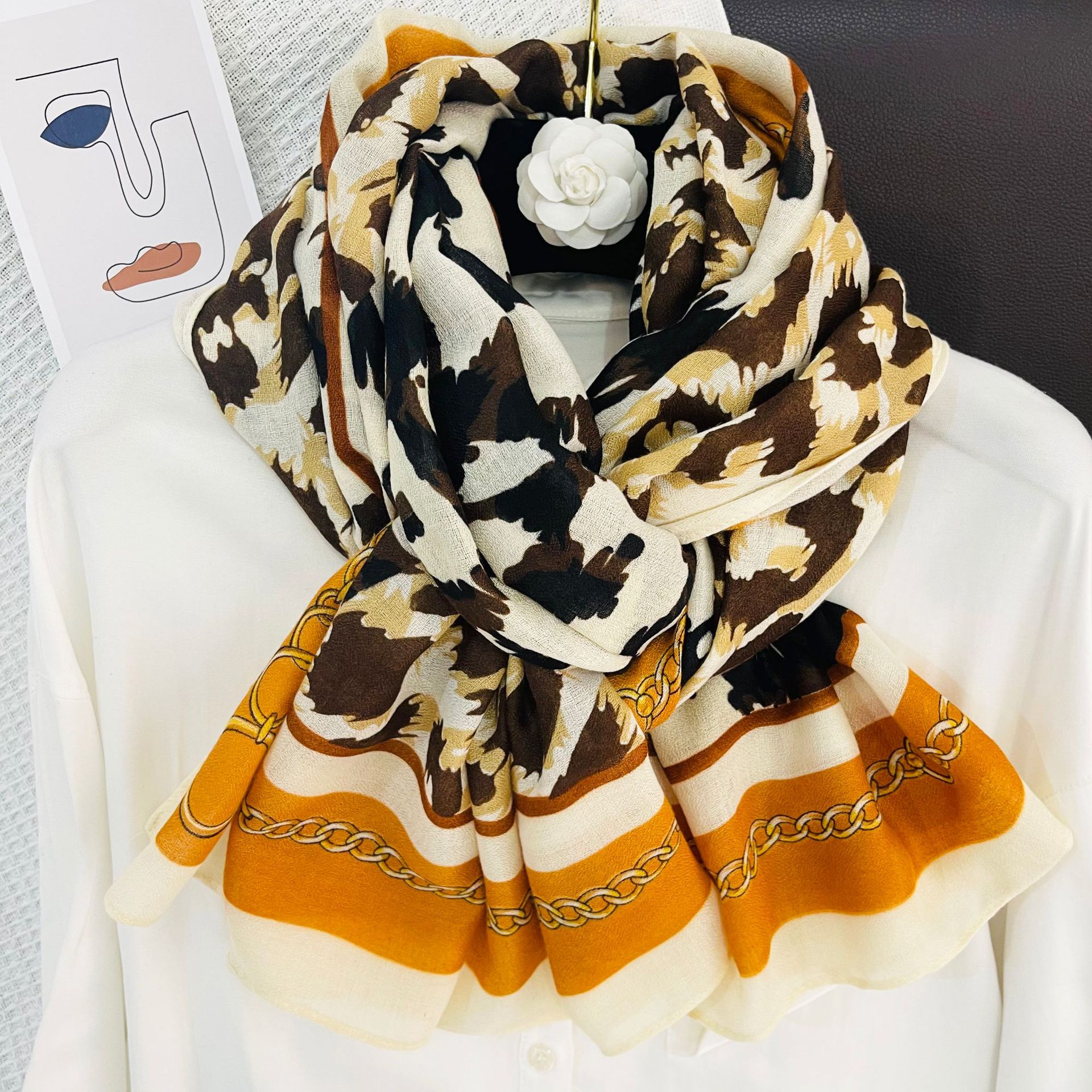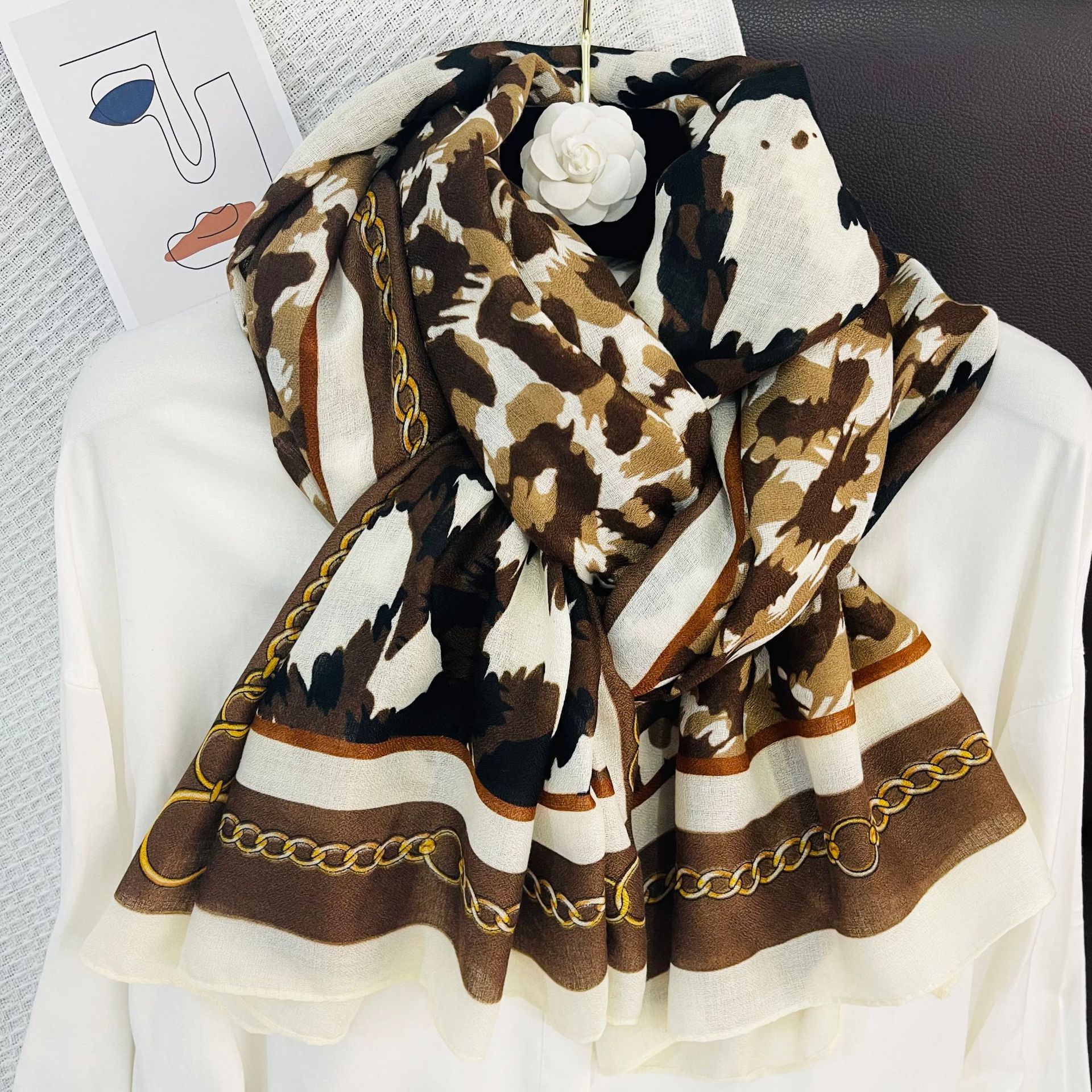 유행 올 매치 레오파드 무늬 면화 및 린넨 스카프 한국 스타일의 우아한 여성 따뜻한 목도리 여행 및 휴가 대외 무역스토어 가기