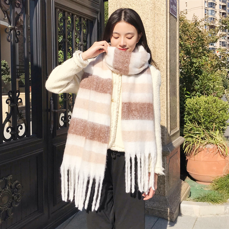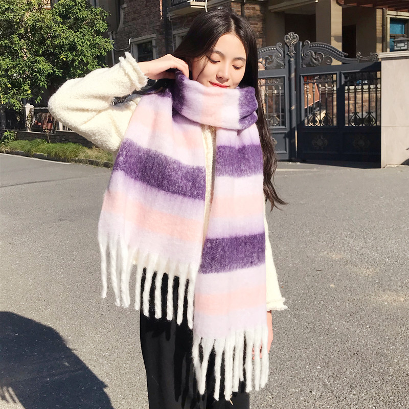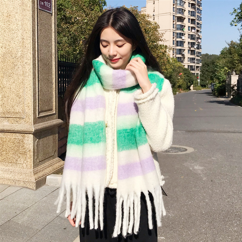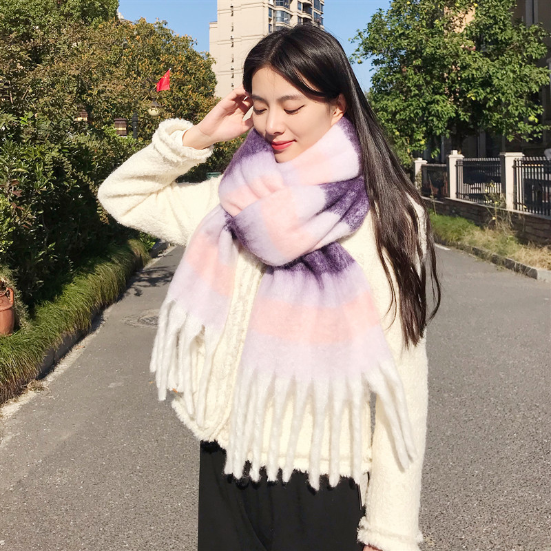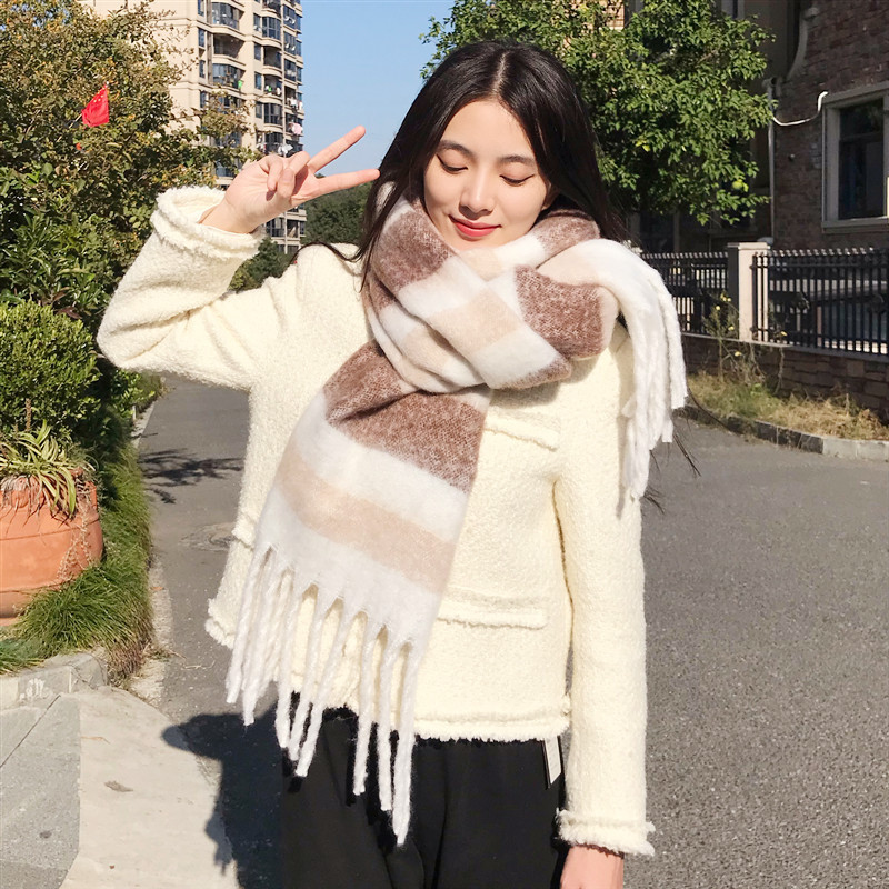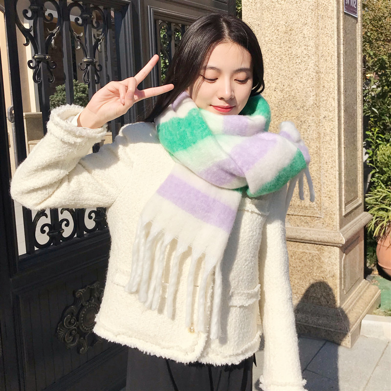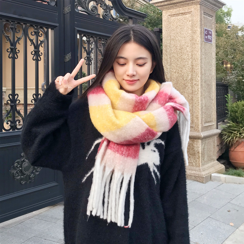 2022 스카프 여성의 가을과 겨울 따뜻한 AAC 루프 원사 컬러 매칭 모든 매치 유럽과 미국 영국 다채로운 격자 무늬 숄
