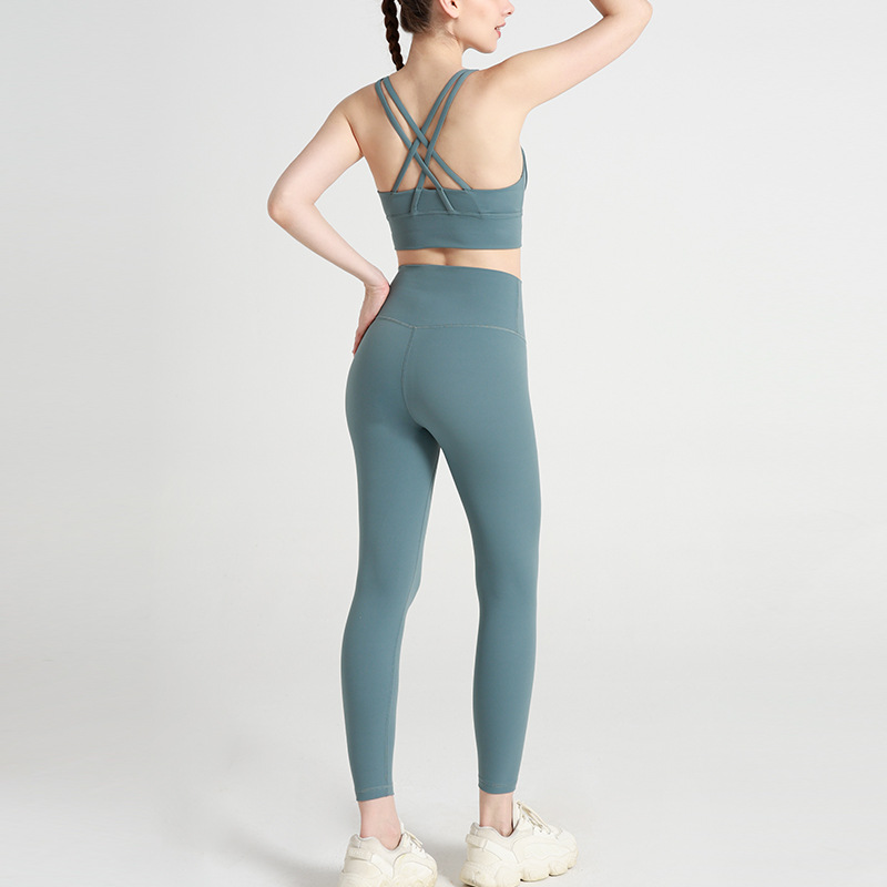 유럽풍 섹시 크로스백리 요가복 세트, 하이웨이스트 힙업 스포츠 피트니스 팬츠, 여성용 요가복