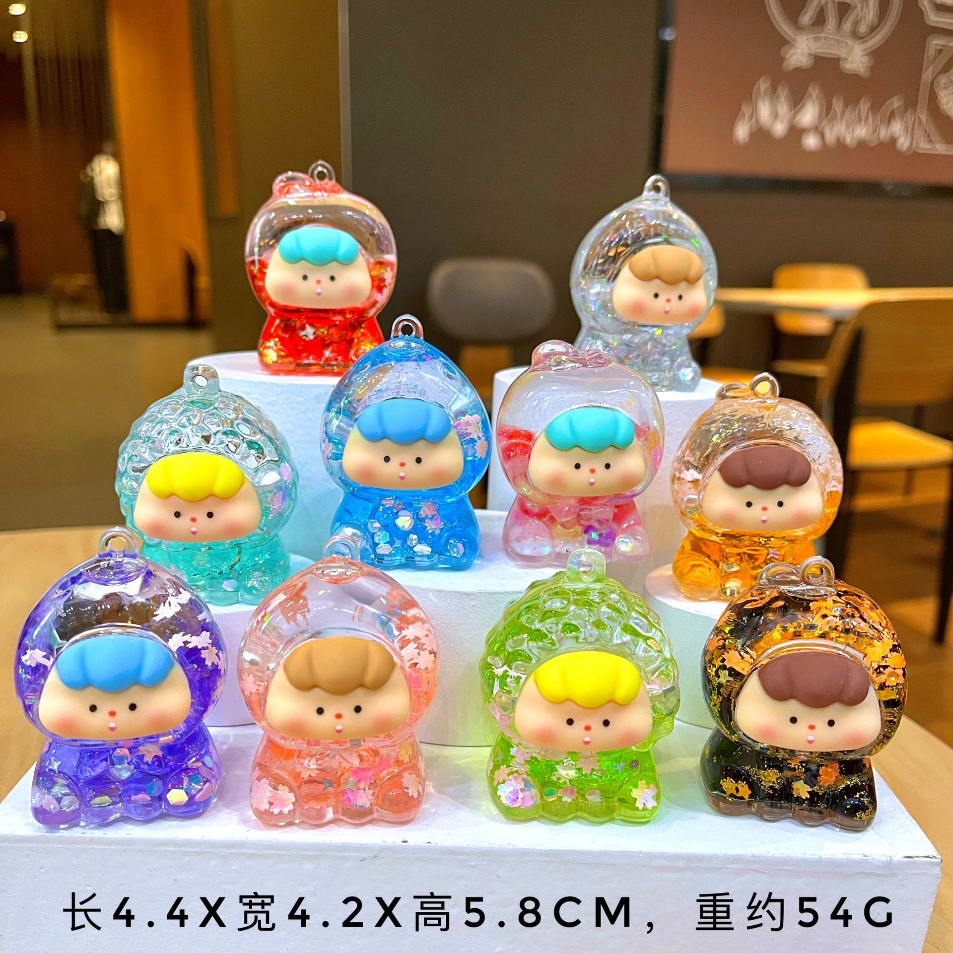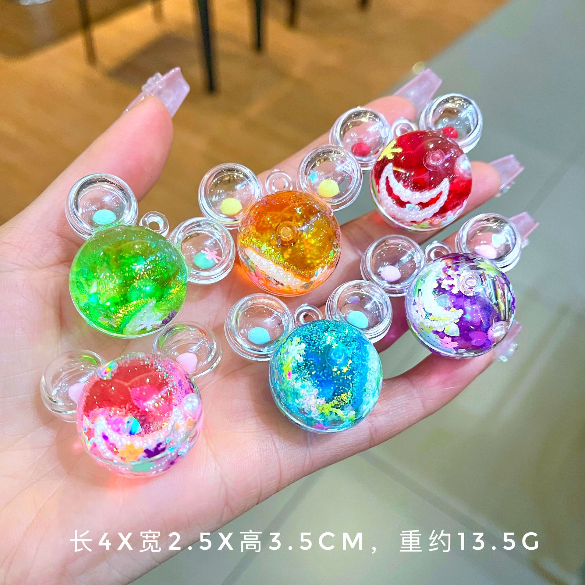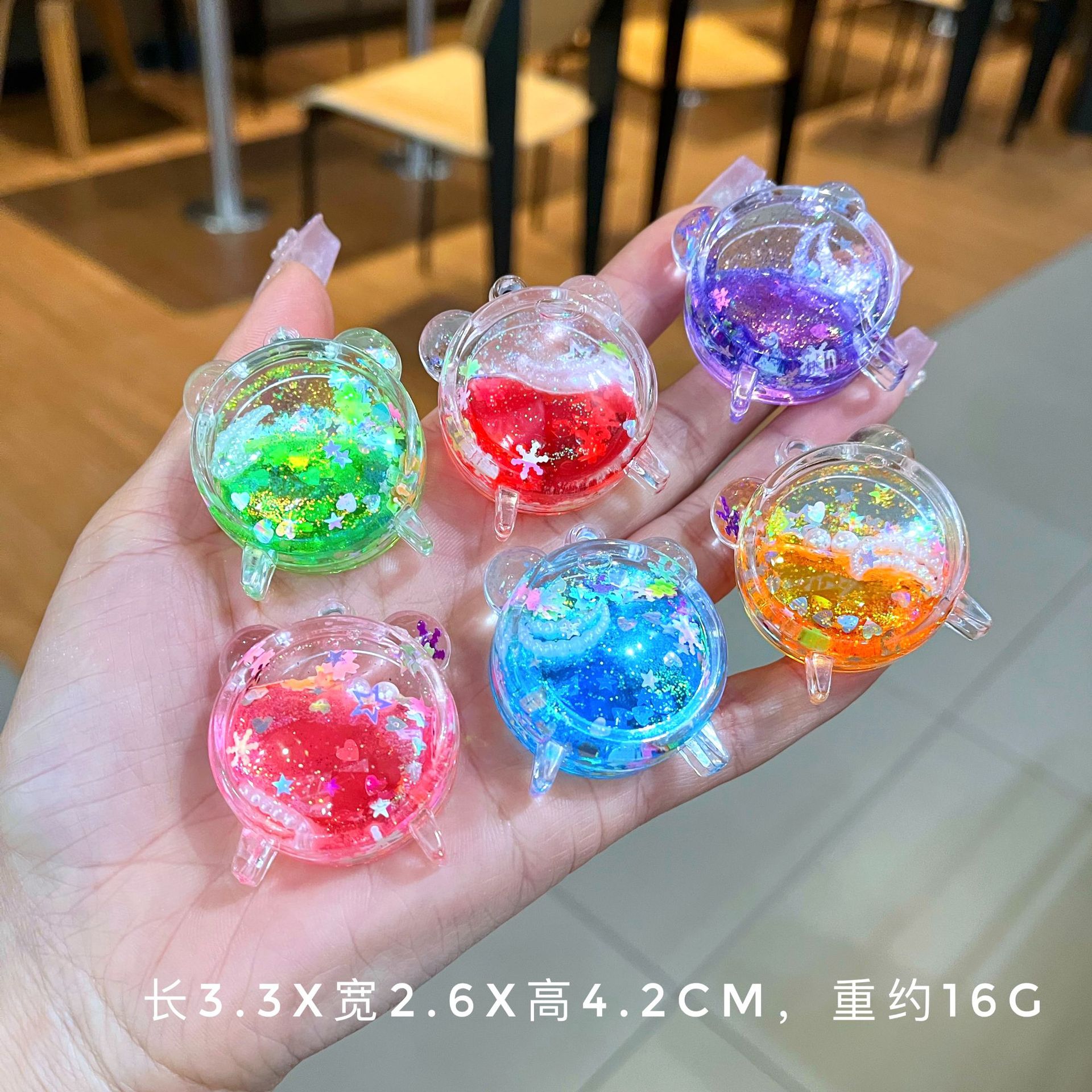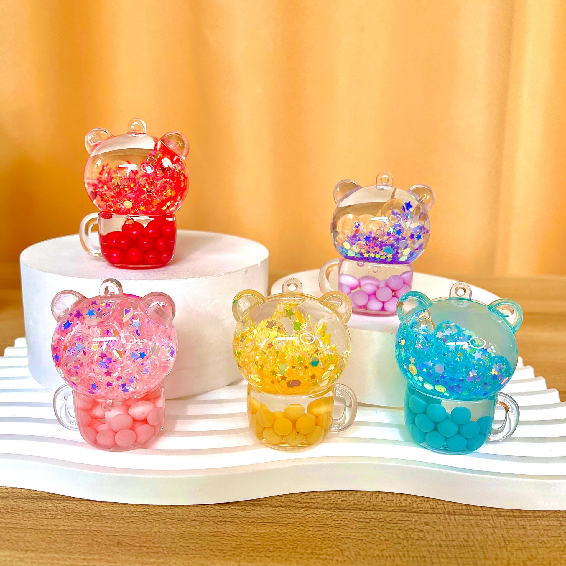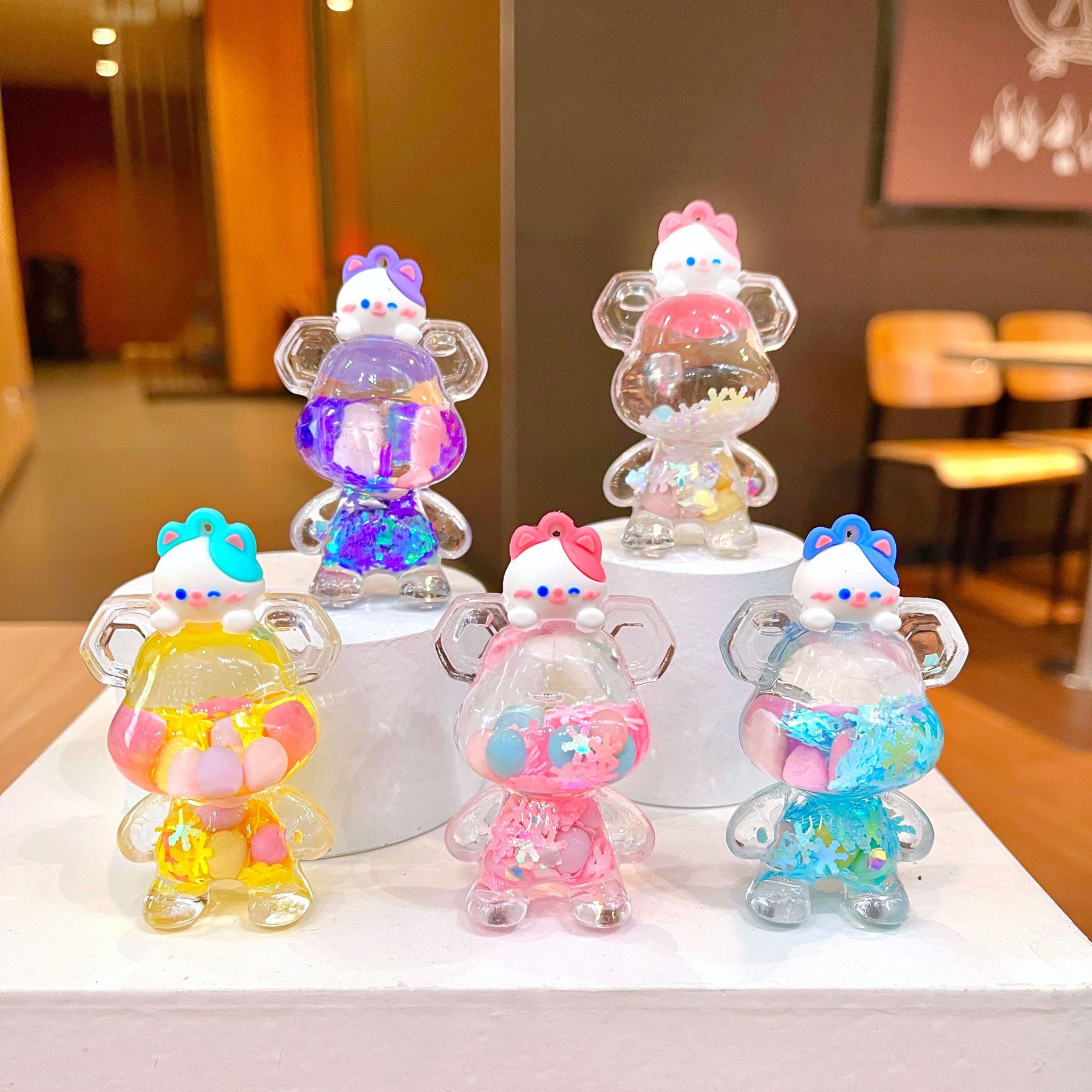 패션 버블 티 베어 열쇠 고리 퀵샌드 병 키 펜던트 데스크탑 장식품 보석 가방 펜던트 도매