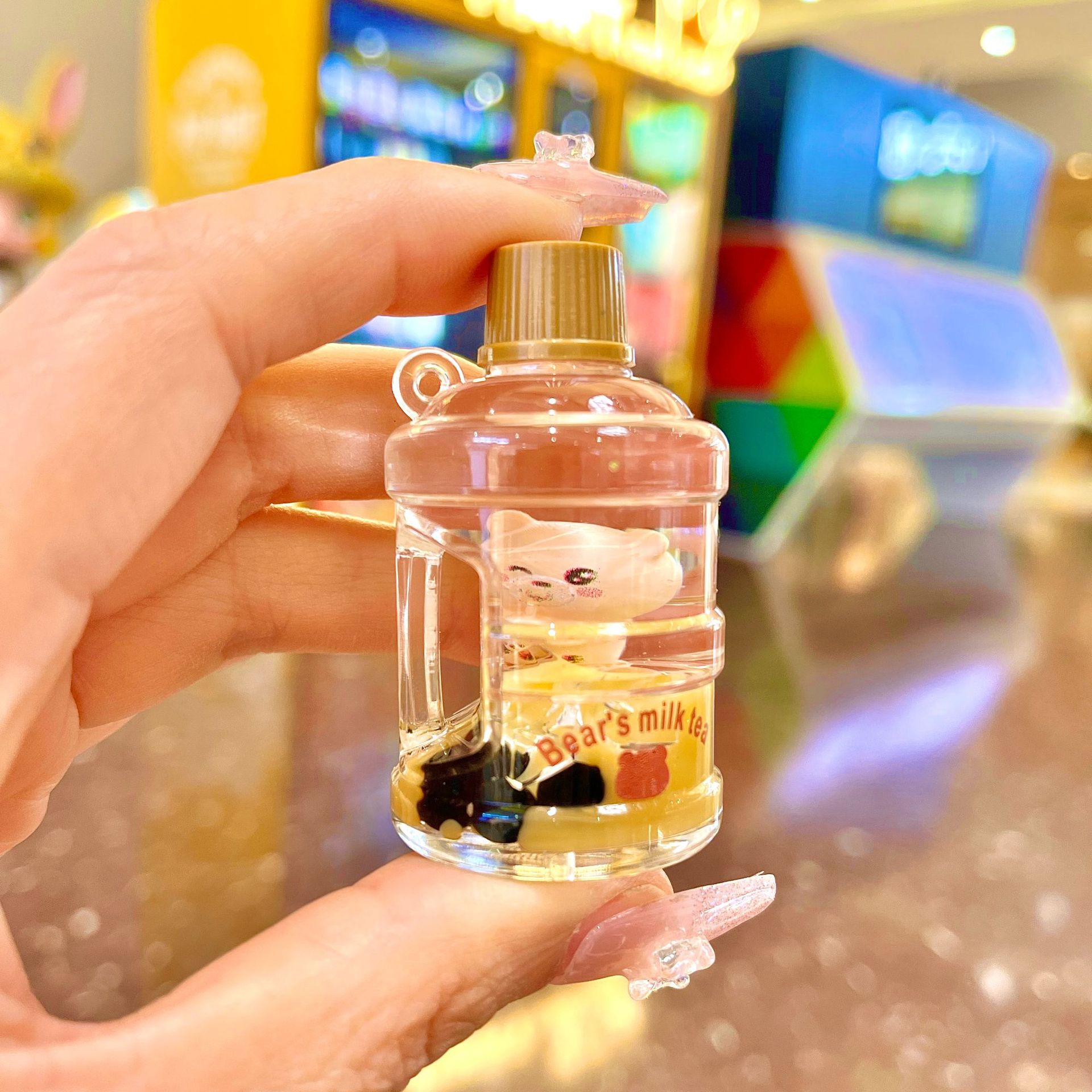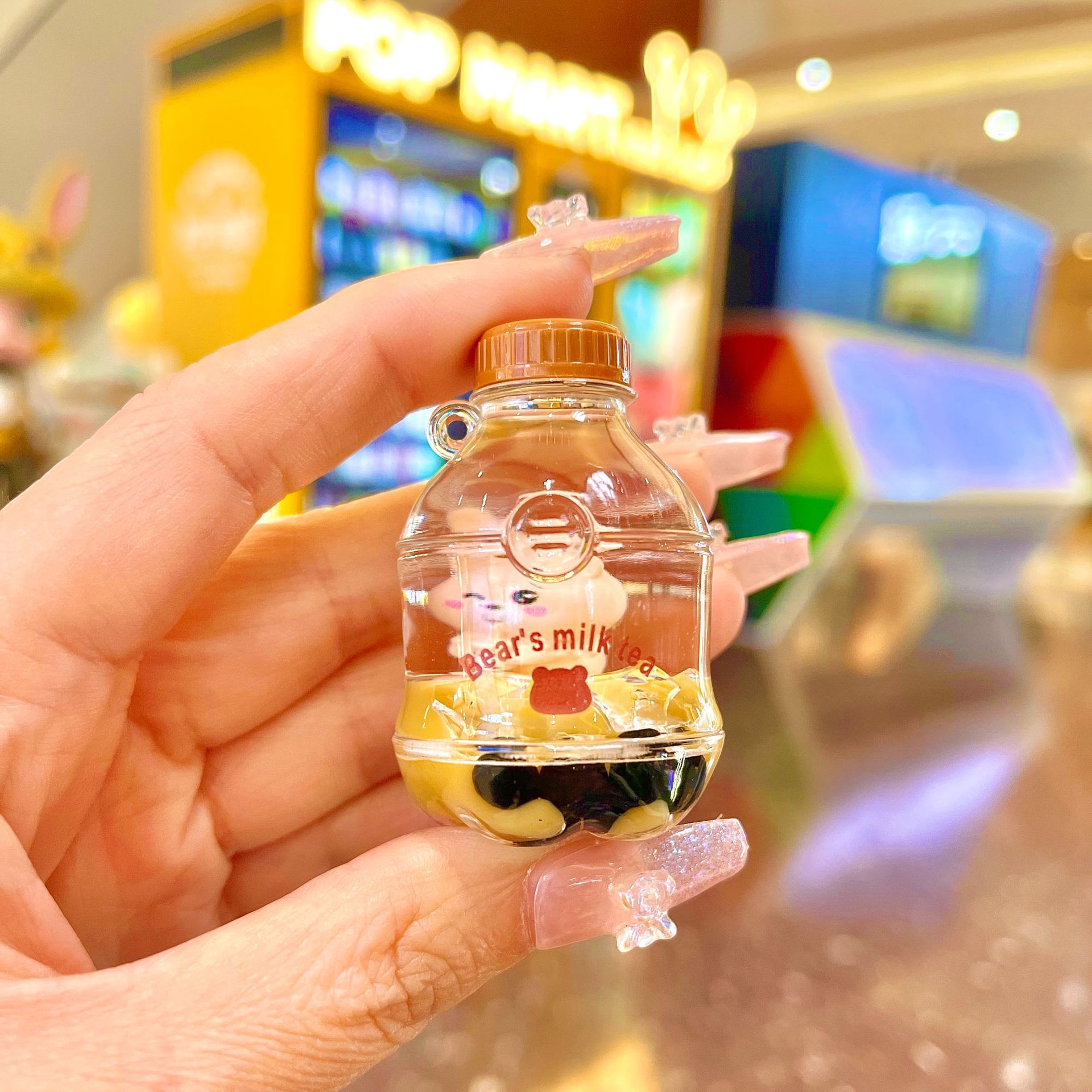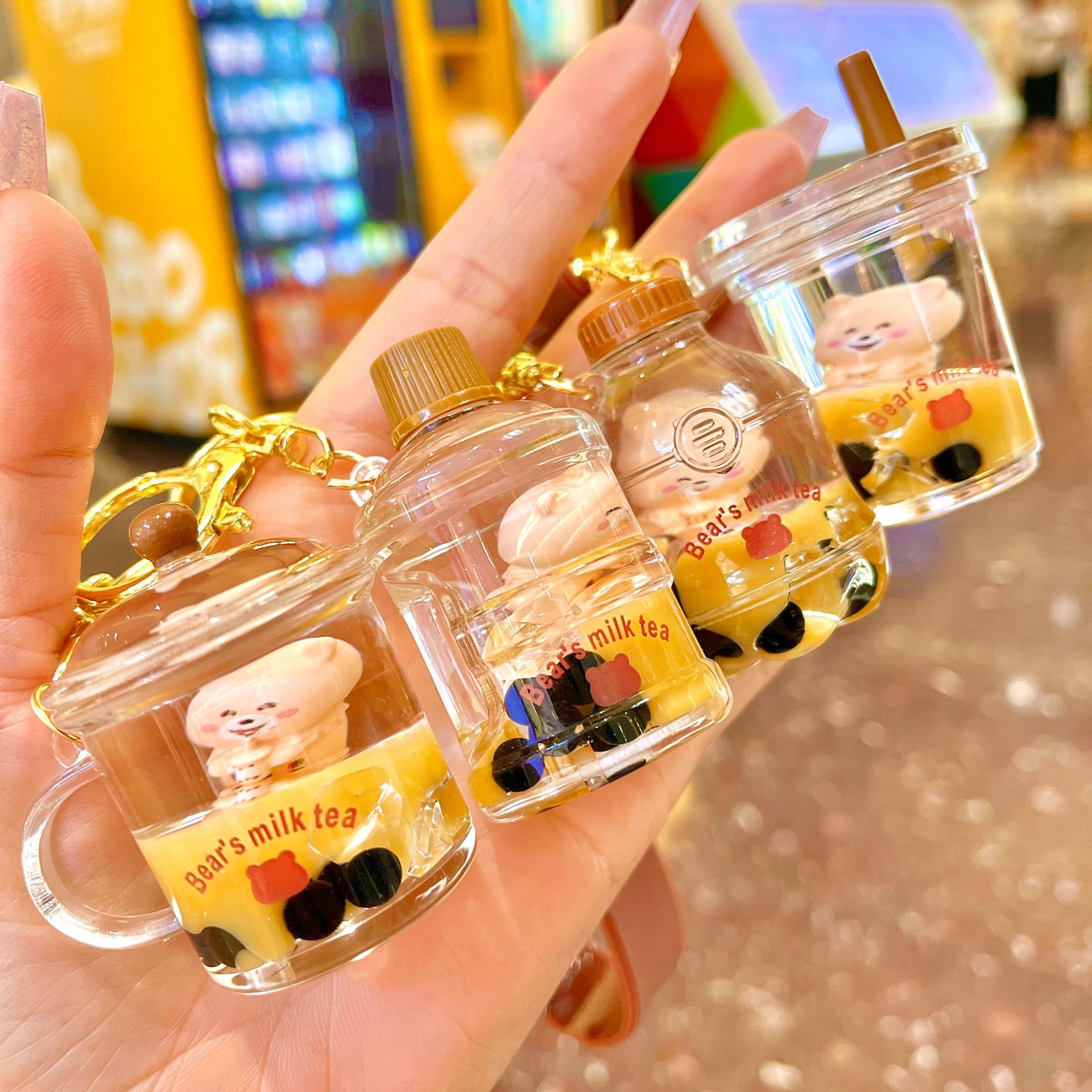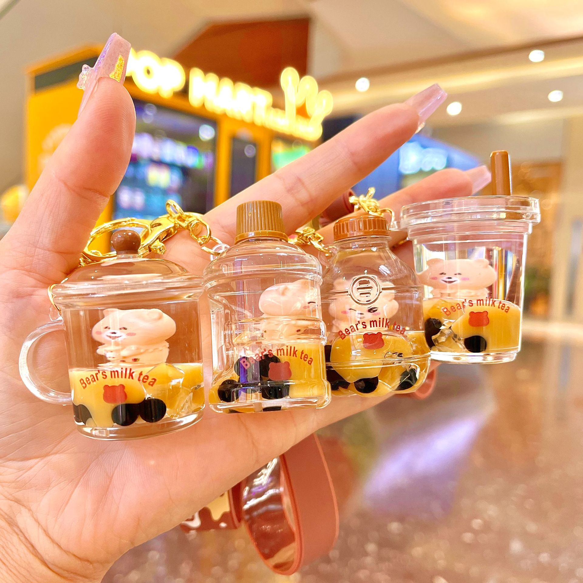 패션 버블 티 베어 열쇠 고리 퀵샌드 병 키 펜던트 데스크탑 장식품 보석 가방 펜던트 도매스토어 가기