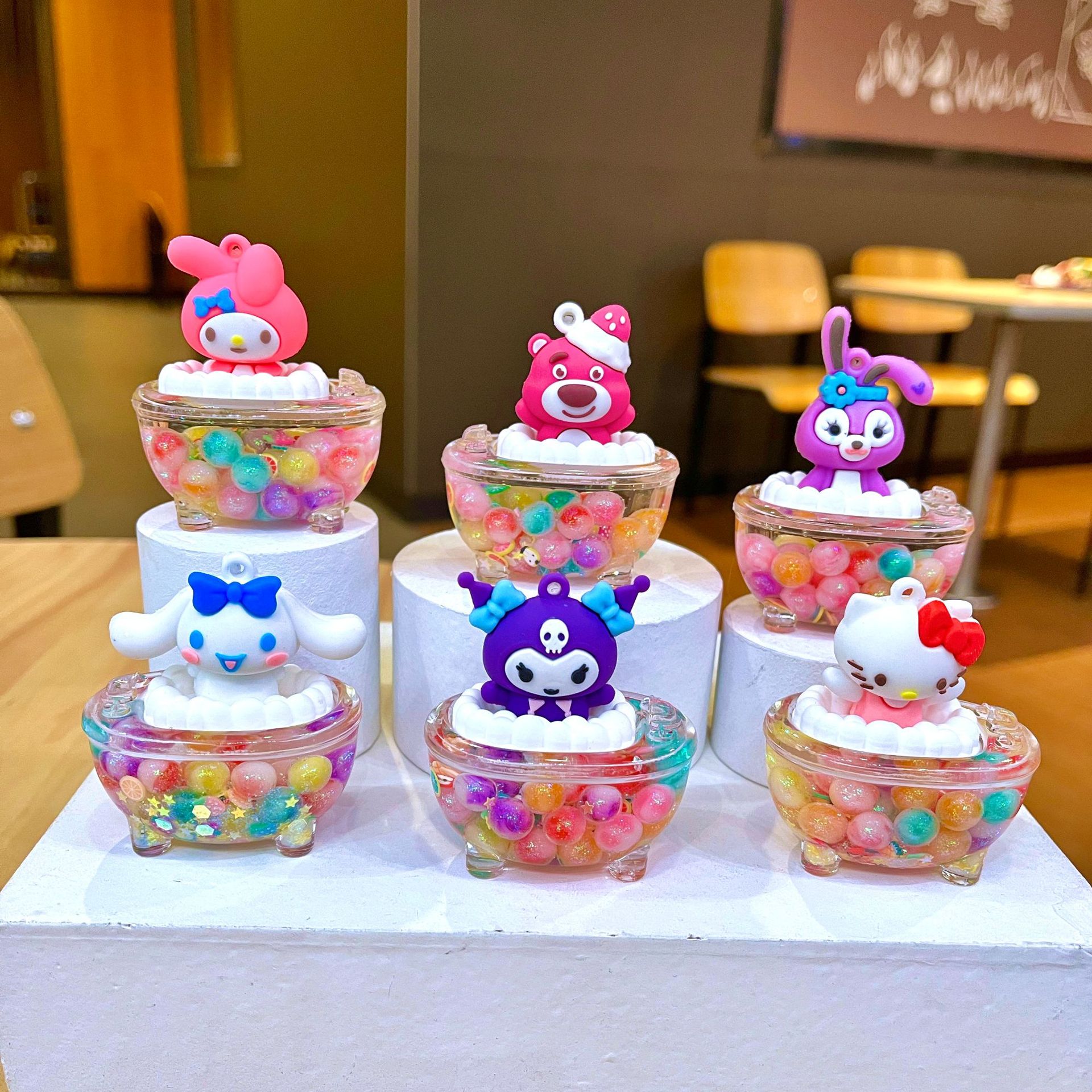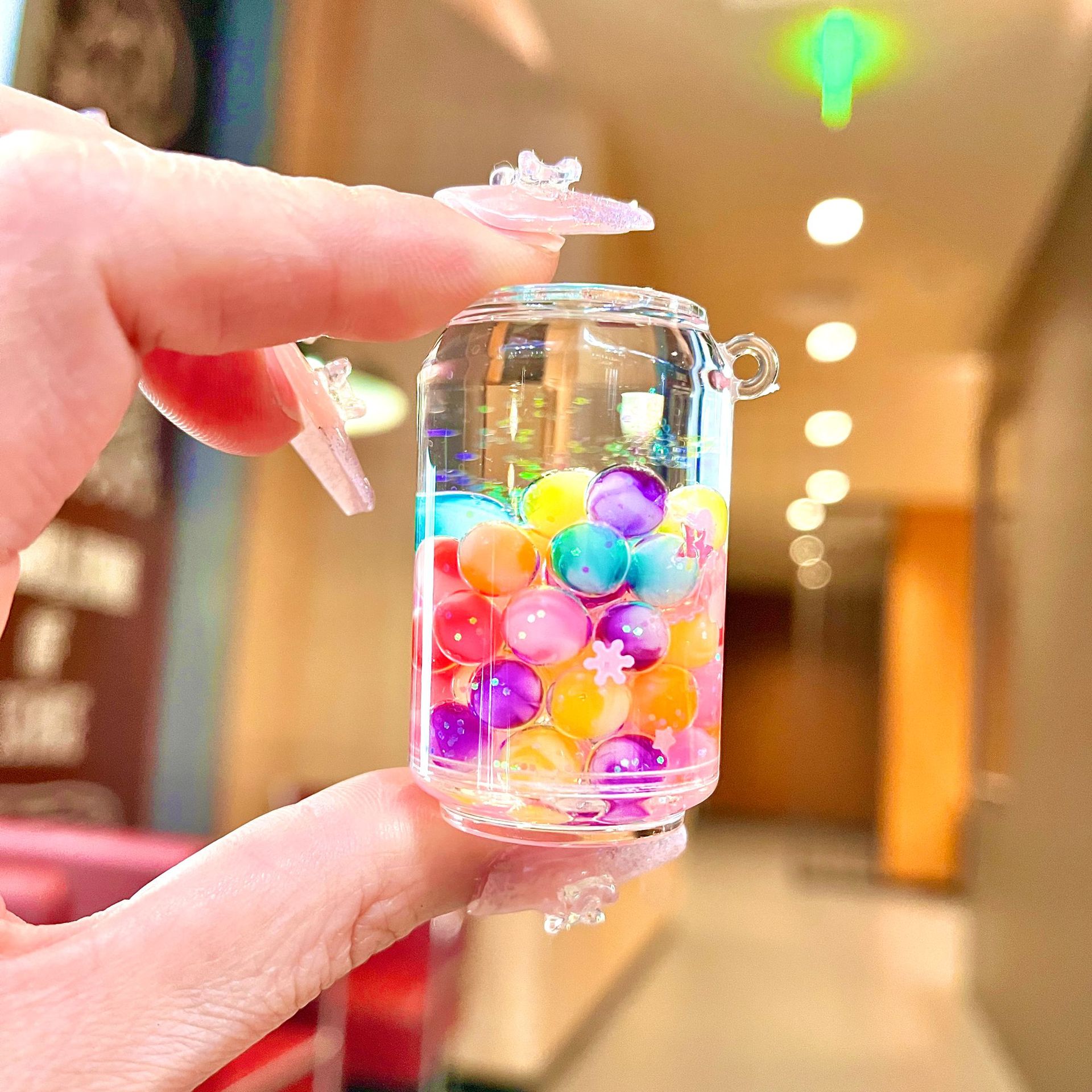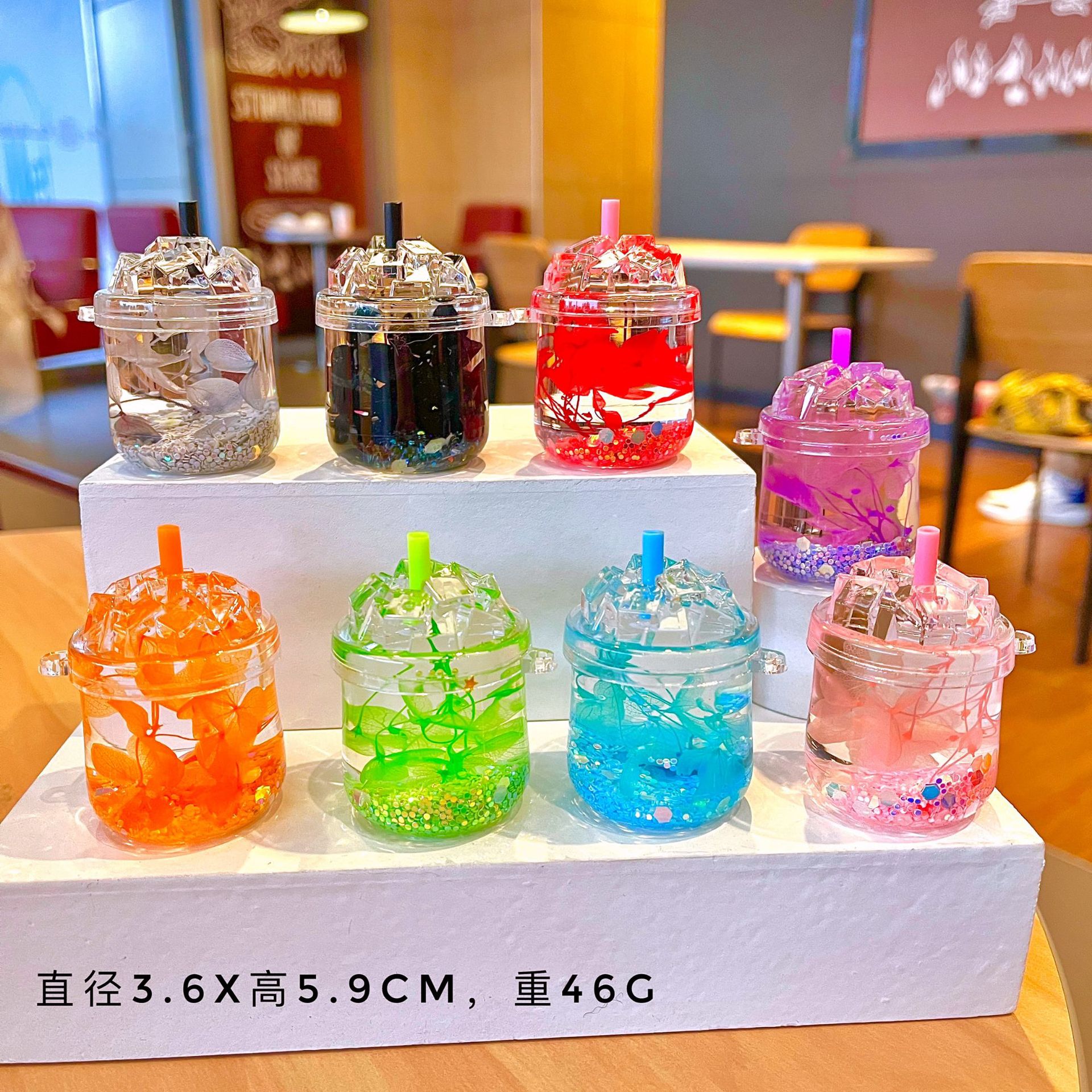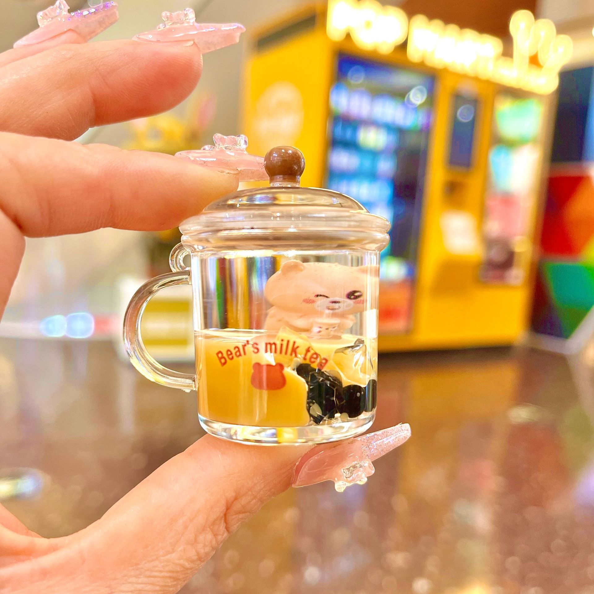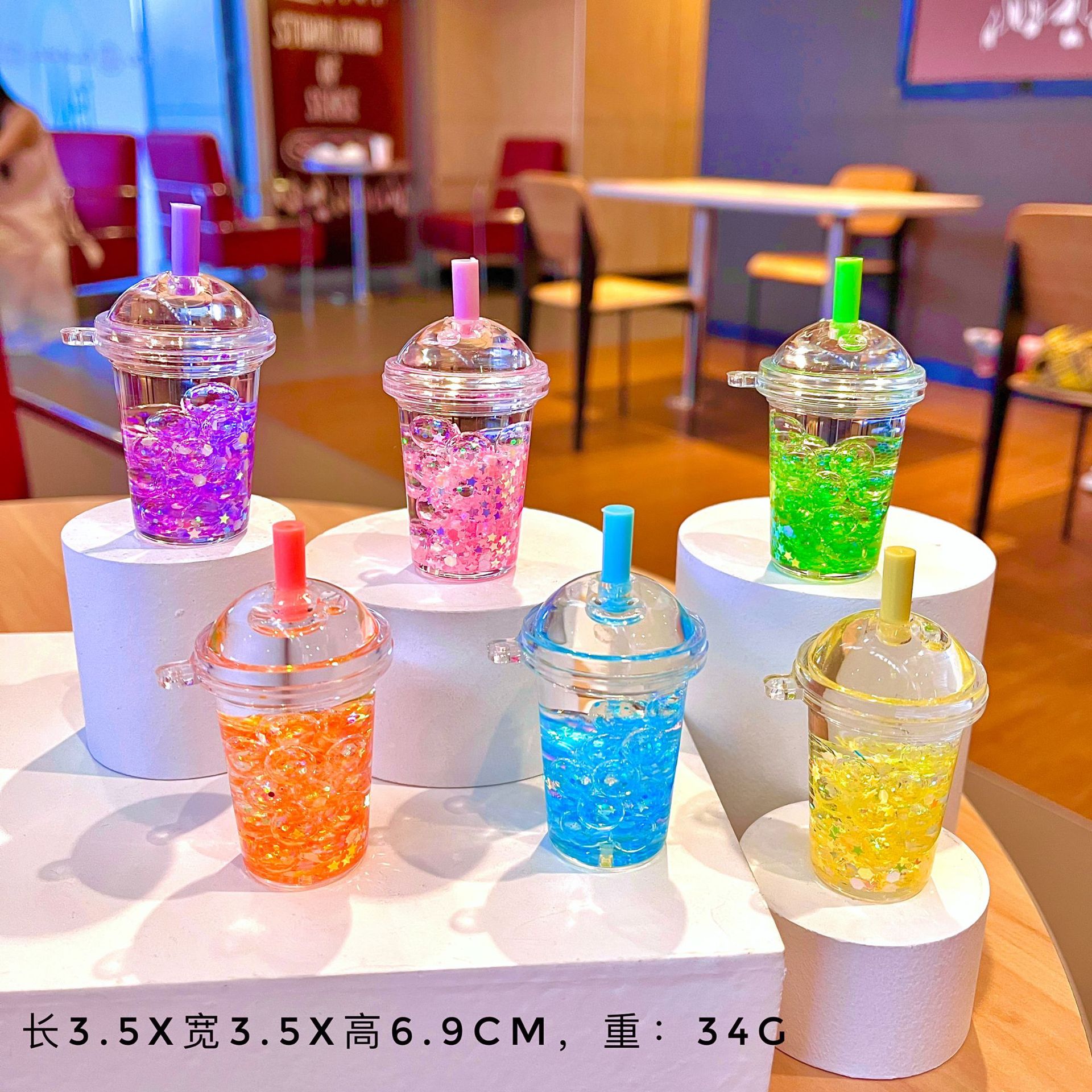 패션 버블 티 베어 열쇠 고리 퀵샌드 병 키 펜던트 데스크탑 장식품 보석 가방 펜던트 도매스토어 가기