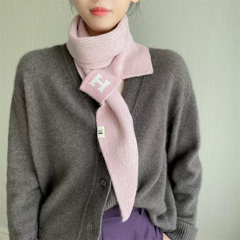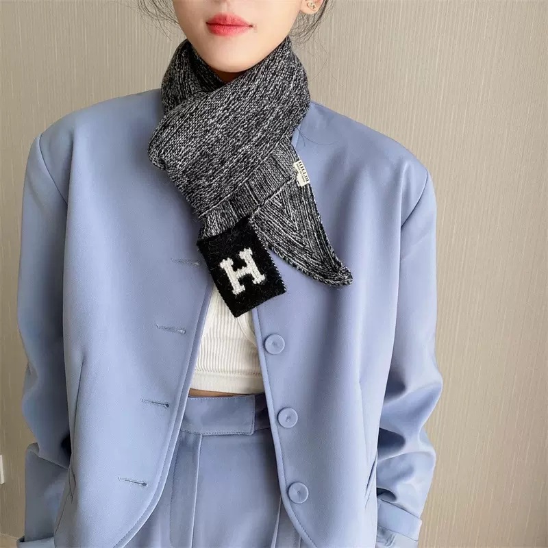 작은 스카프 여성의 가을과 겨울 단색 니트 울 크로스 따뜻한 방한 목 짧은 스카프 기질 모든 매치 실크 스카프