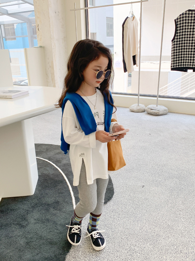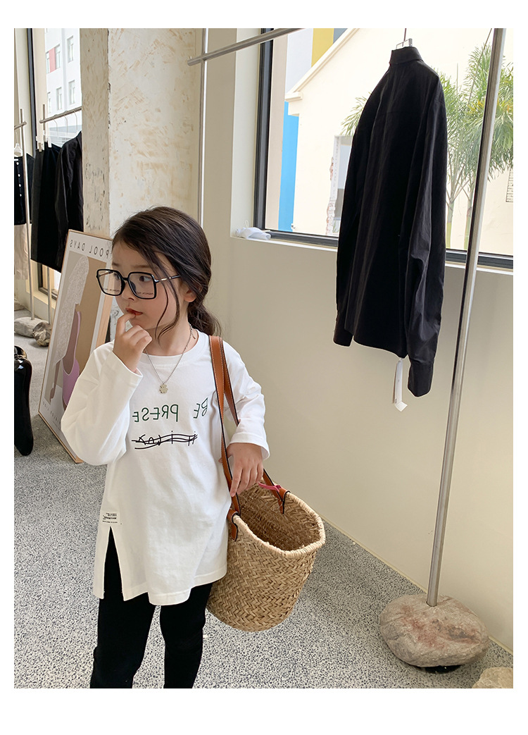 외국 스타일 재킷 긴 스플릿 긴 소매 편지 인쇄 T 셔츠 조수 어린이 머리카락의 여자 한국어 버전스토어 가기