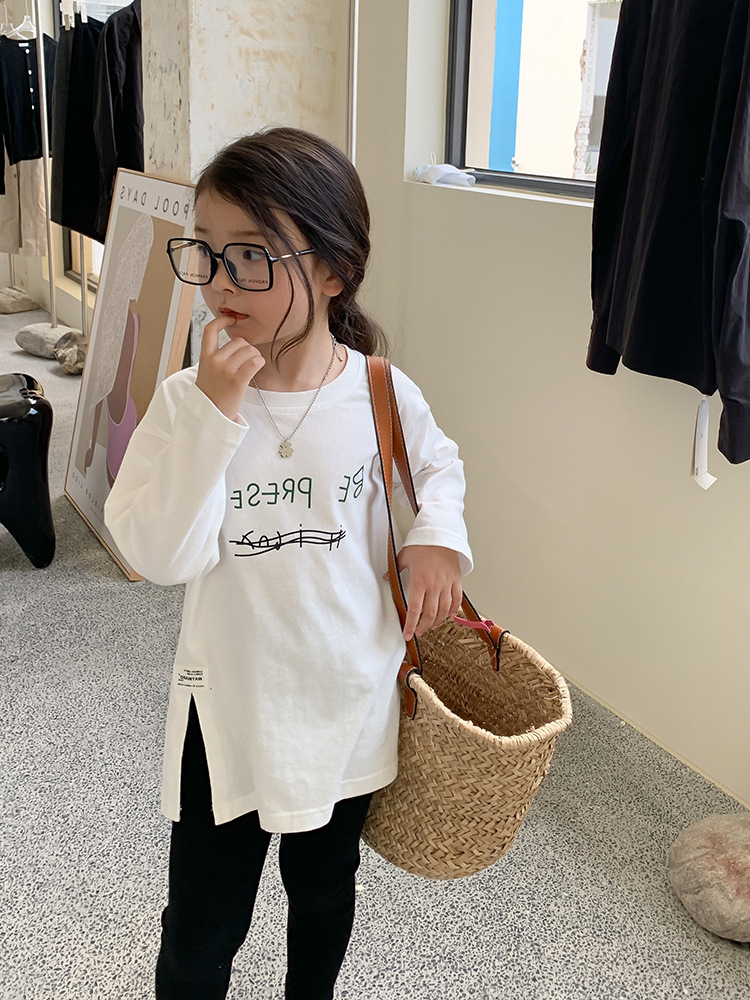 외국 스타일 재킷 긴 스플릿 긴 소매 편지 인쇄 T 셔츠 조수 어린이 머리카락의 여자 한국어 버전