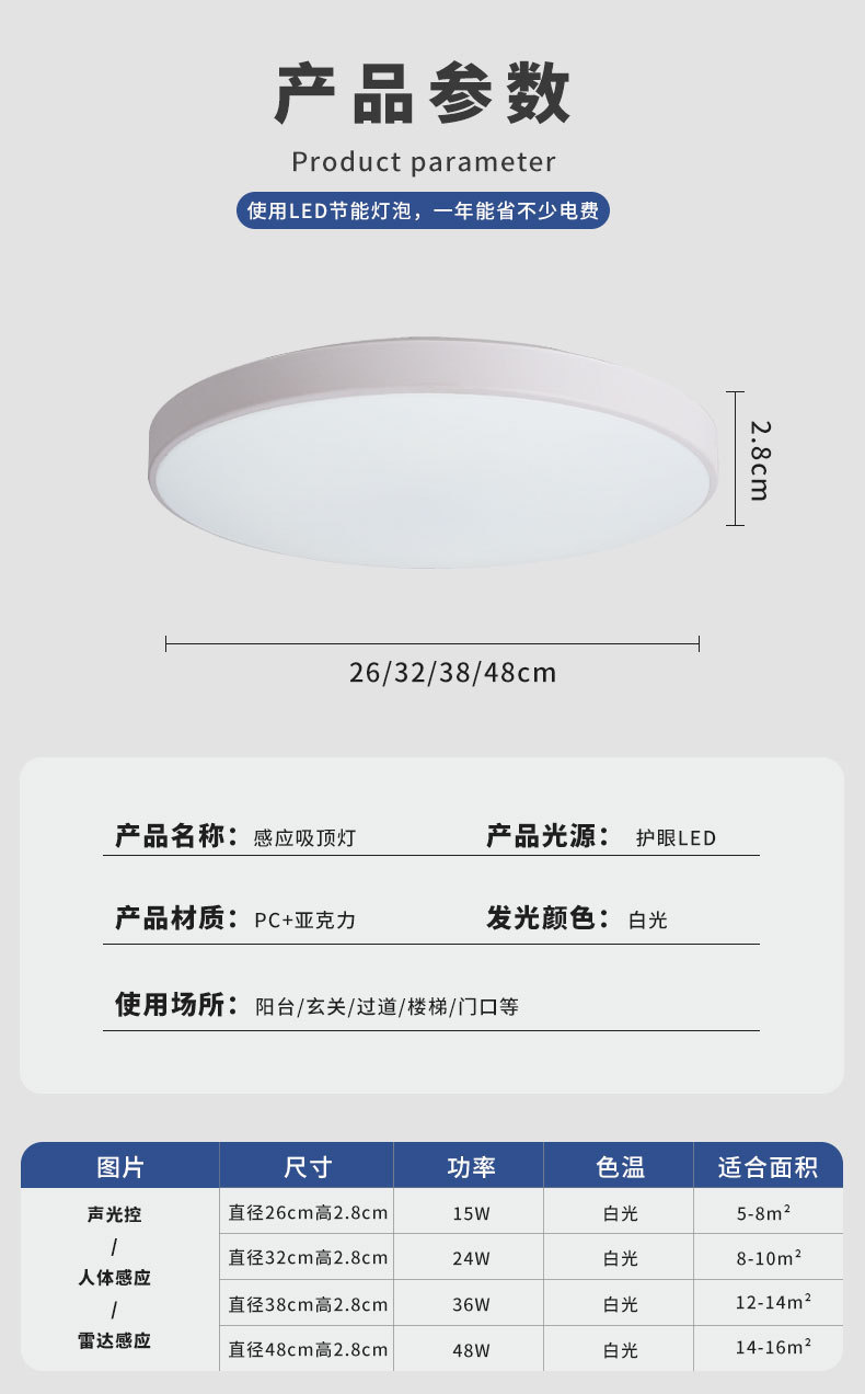 LED 적외선 센서 삼중 기능 천장등 인체 레이더 음성 제어등 복도 발코니 조명 스마트 센서