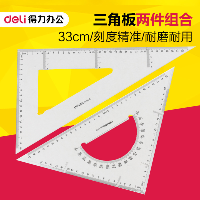 델리 문구 6435 삼각형 세트 플라스틱 투명 정삼각형 눈금자 33cm 삼각형 드로잉 세트 눈금자스토어 가기