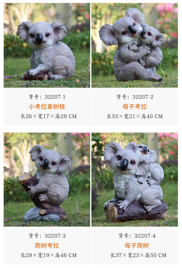 빌라 안뜰 정원 장식 펜던트 야외 시뮬레이션 동물 장식품 수지 코알라 조각 풍경 스케치스토어 가기