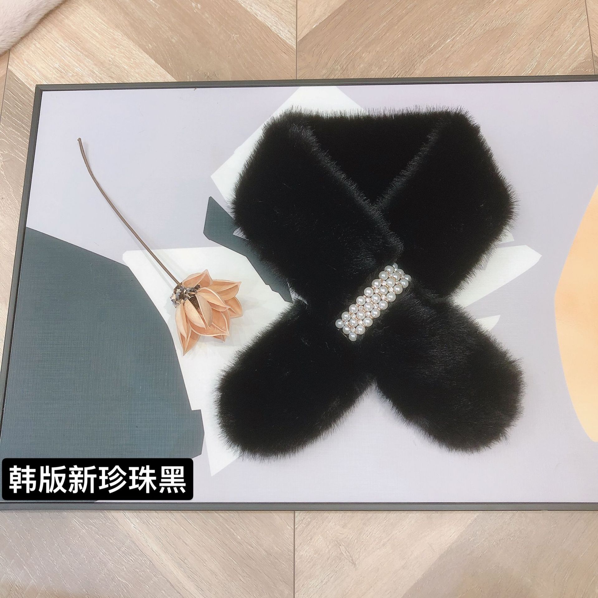 마오 마오 스카프 가을과 겨울 귀여운 한국 진주 화이트 유니버설 따뜻한 목 소녀 플러시 단색 스카프 재고스토어 가기