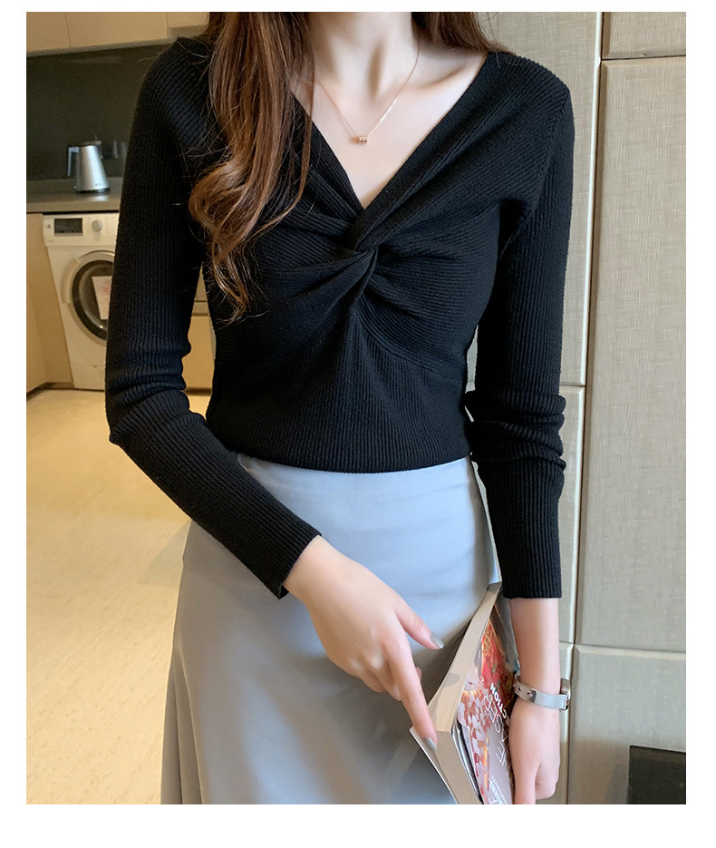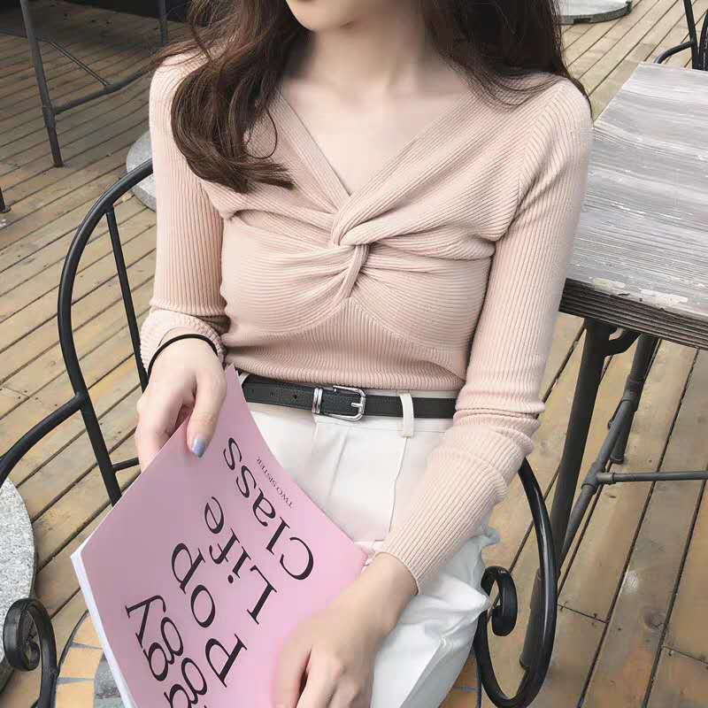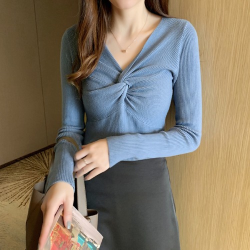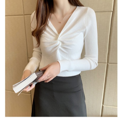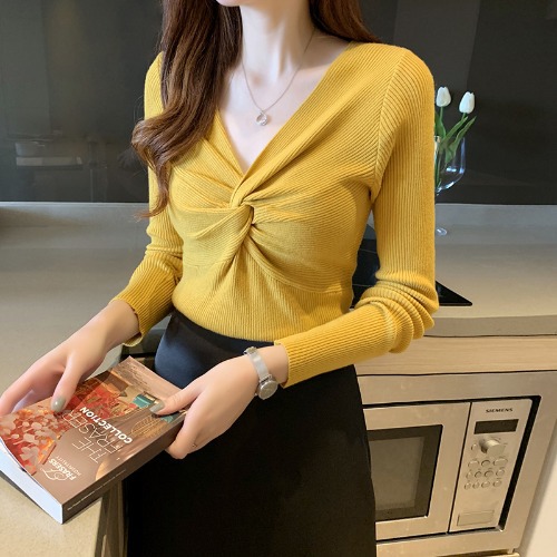 가을 2023 새로운 슬림핏 니트웨어 여성용 긴팔 칼라 섹시한 탑 여성용 내부 스웨터 얇은 베이스 셔츠스토어 가기