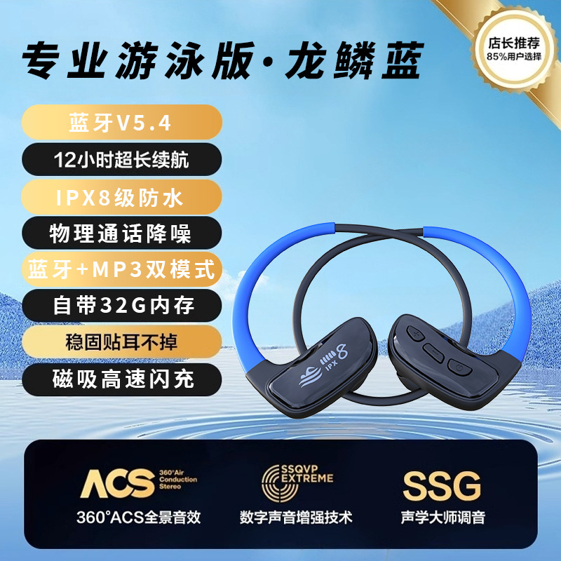 • 전문 수영 골전도 헤드폰 + 드래곤 스케일 블루 + 32G