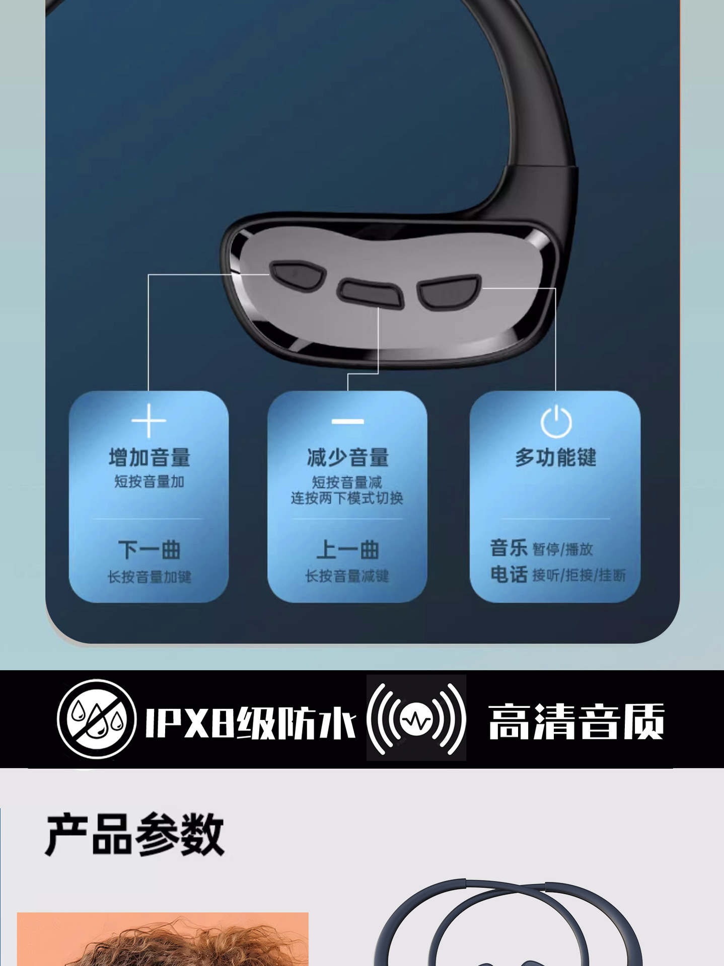 블루투스 헤드셋 무선 인이어 블랙 기술 (32G 메모리 긴 내구성 귀 걸이 골전도 헤드셋 포함)스토어 가기