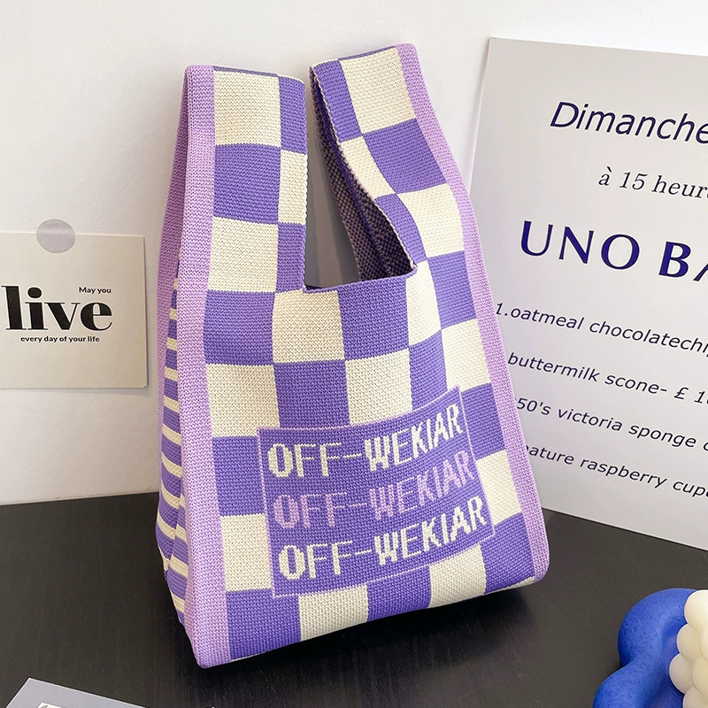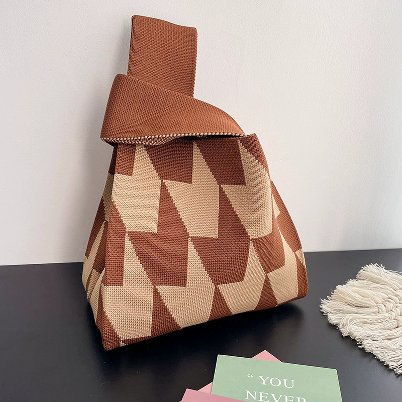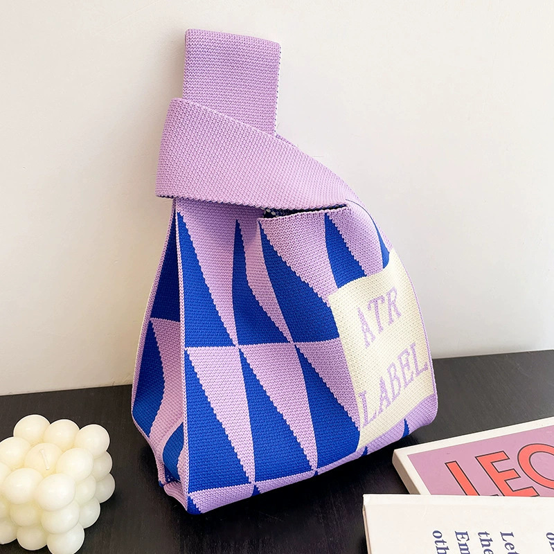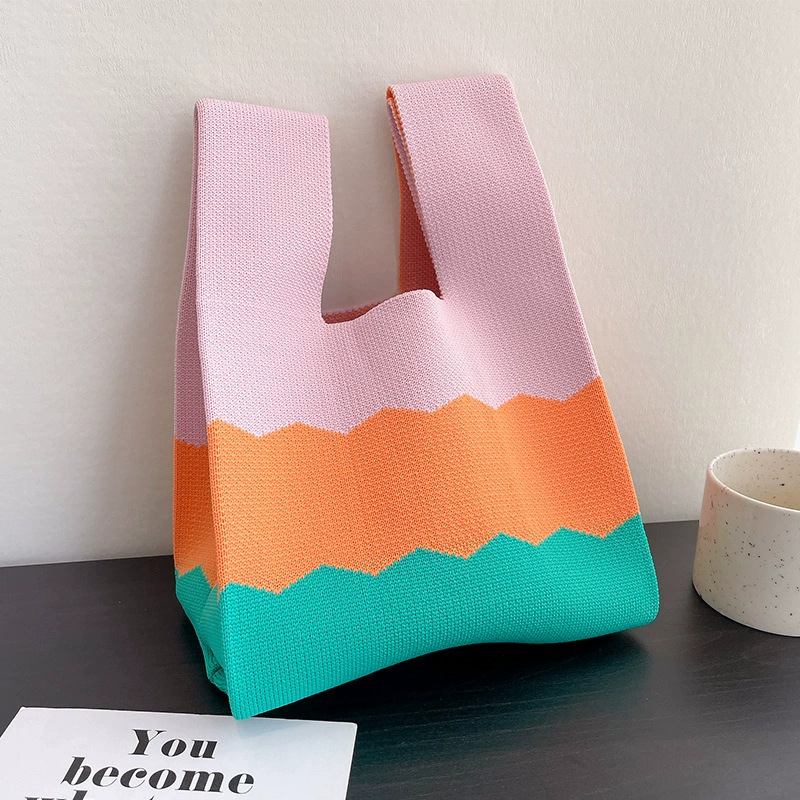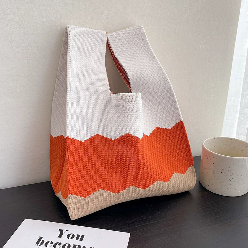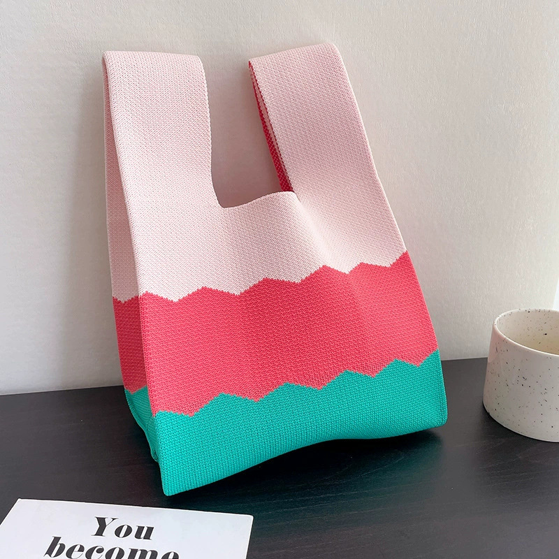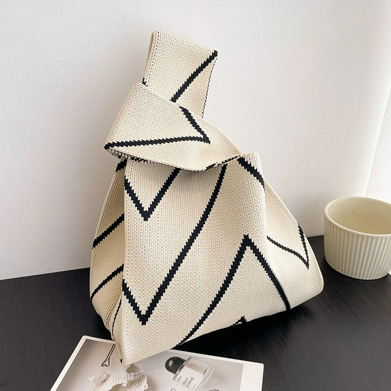 새로운 질감 니트 가방 여성의 봄과 여름 핸드백 스트라이프 핸드 헬드 토트 백 틈새 대용량 가방스토어 가기