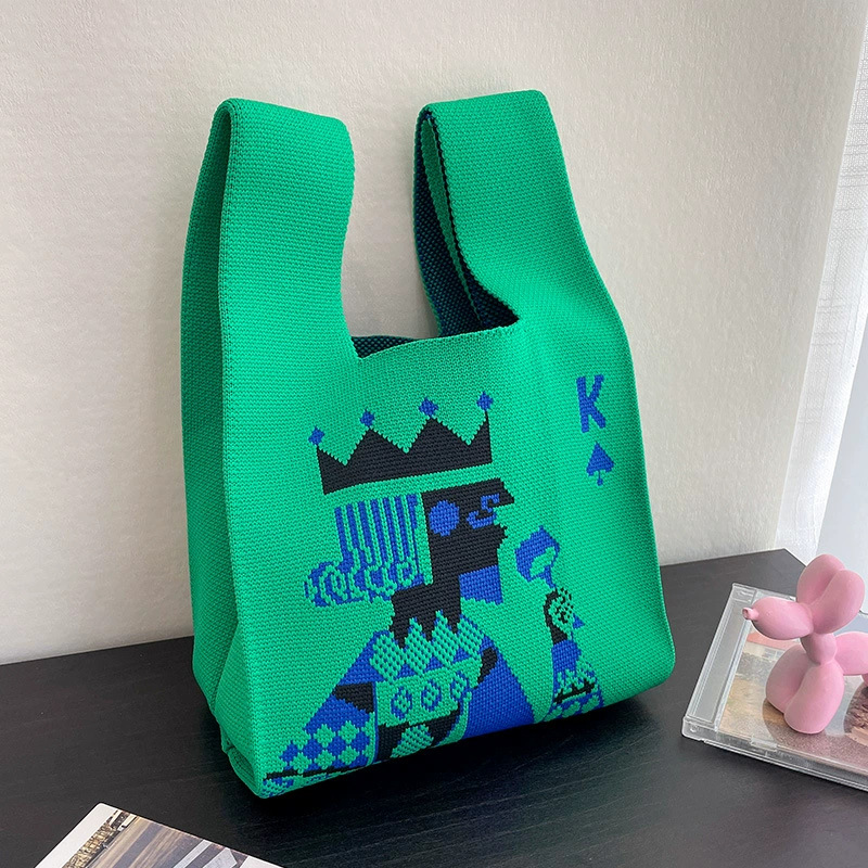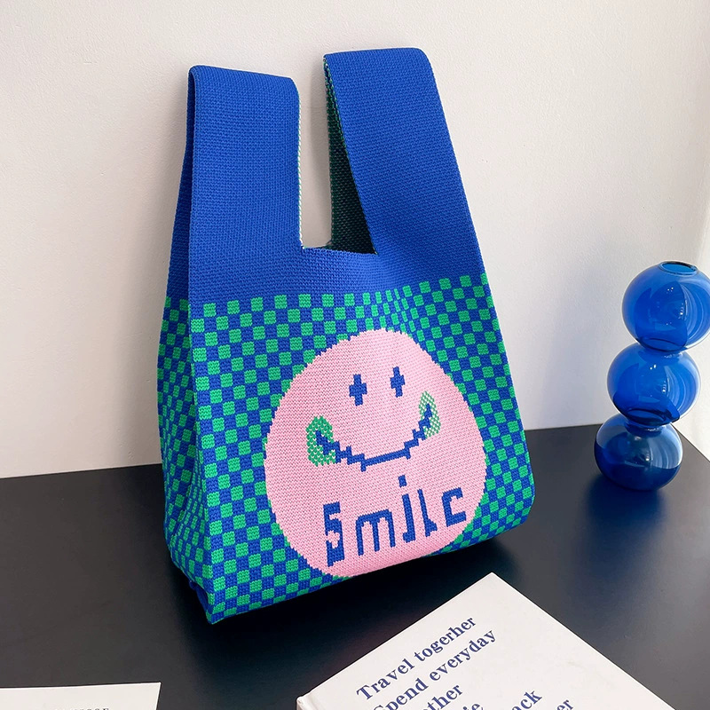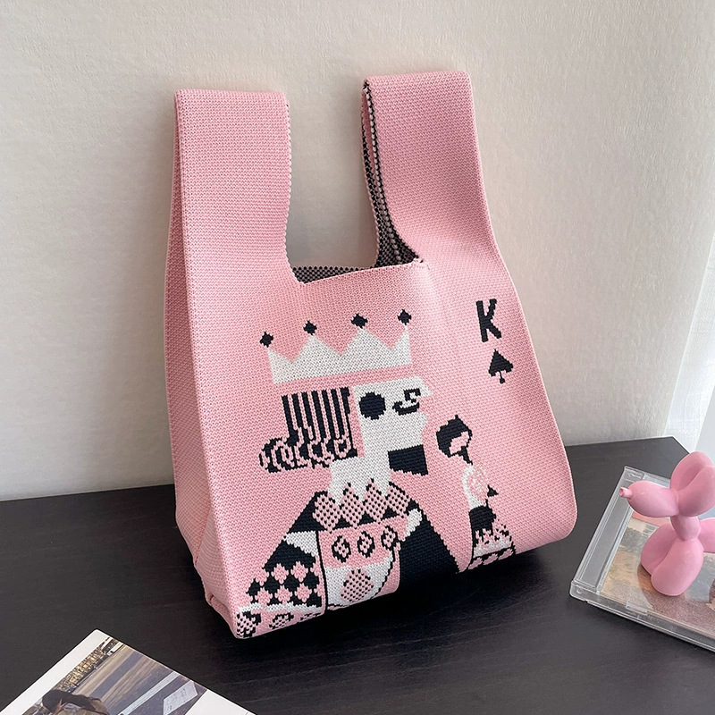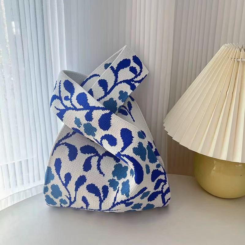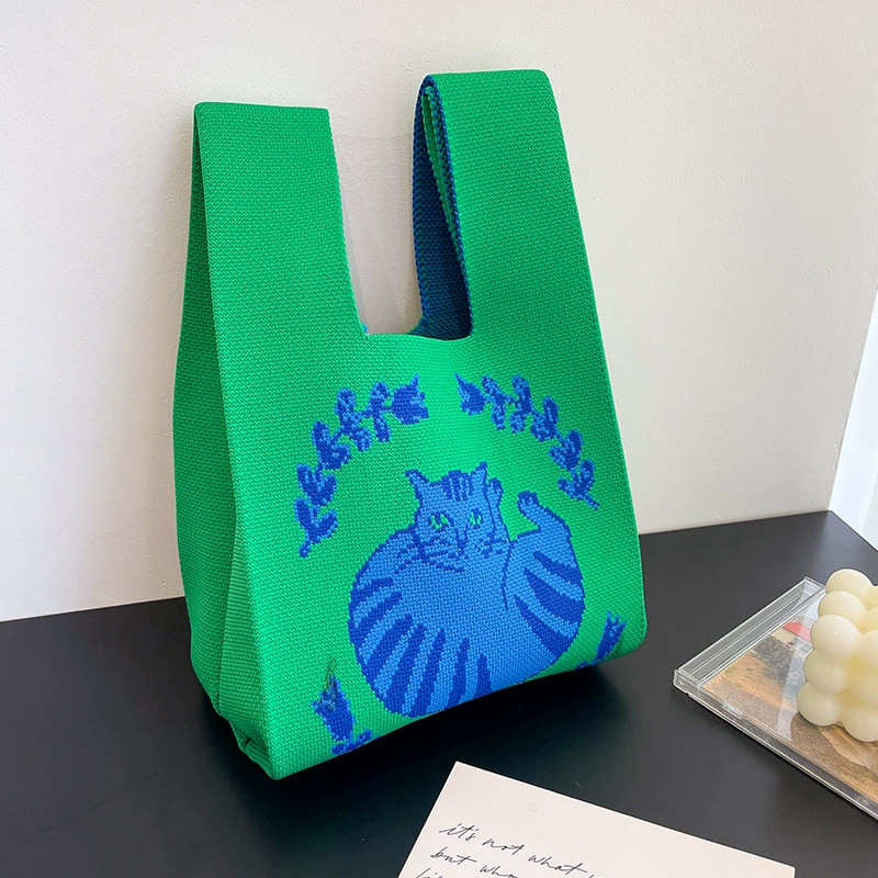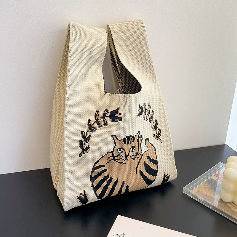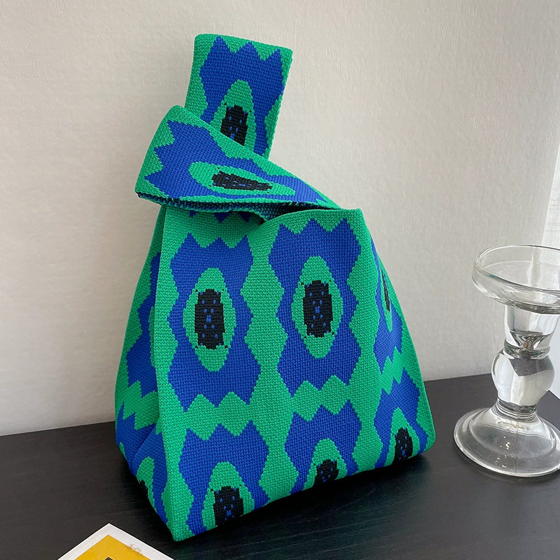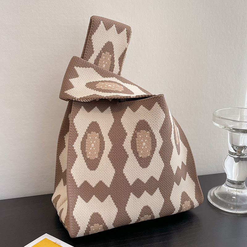 새로운 질감 니트 가방 여성의 봄과 여름 핸드백 스트라이프 핸드 헬드 토트 백 틈새 대용량 가방스토어 가기