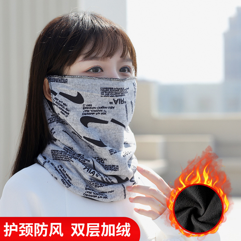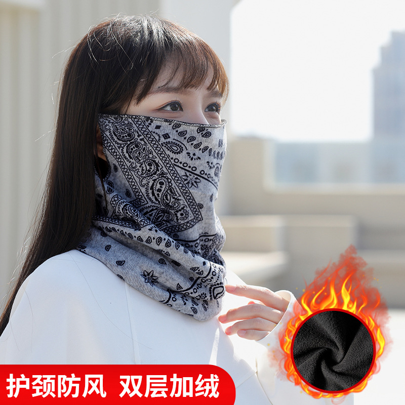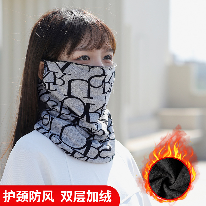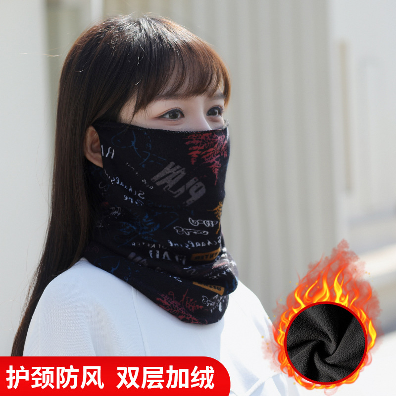 秋冬毛绒挂耳百变面罩护颈防风防寒保暖围脖套印花女户外骑行针织