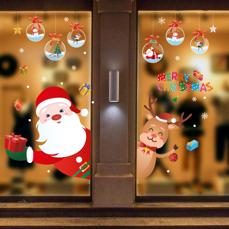 2023 새로운 크리스마스 장식 스티커 크리스마스 쇼핑몰 창 장식 산타 클로스 눈사람 휴일 스티커스토어 가기