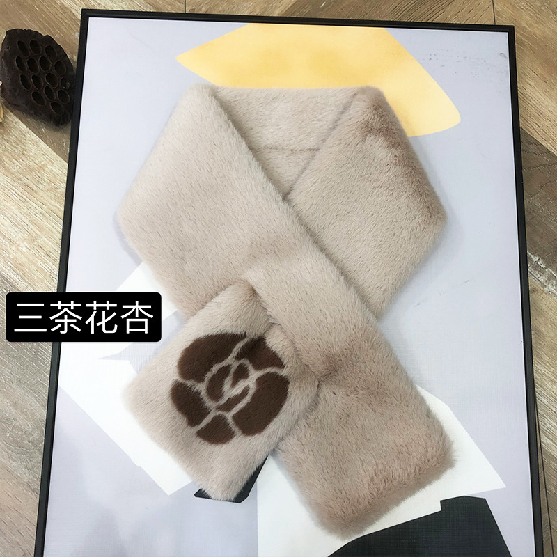 동백 모조 토끼 모피 스카프 23 겨울 새로운 패션 우아한 여성의 따뜻한 목 커버 작은 샤넬 스타일 스카프스토어 가기