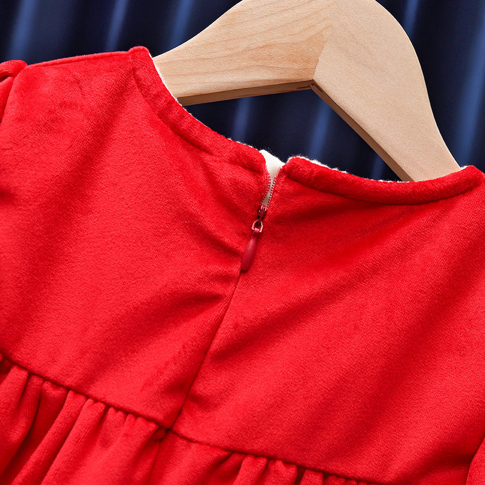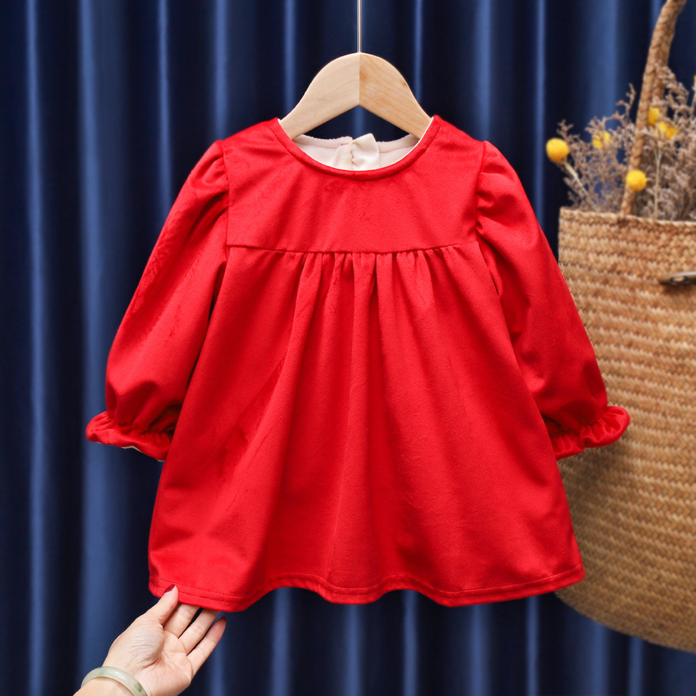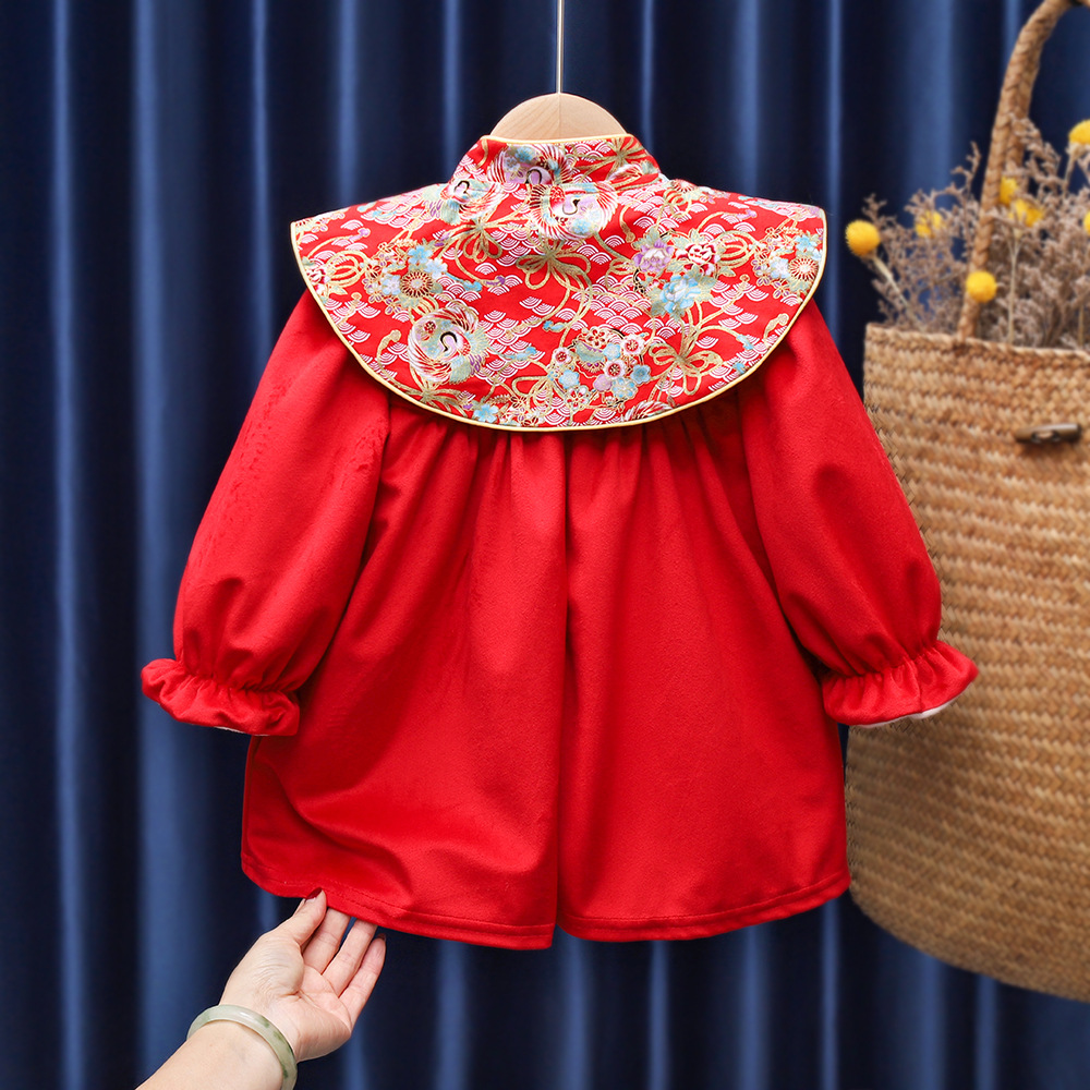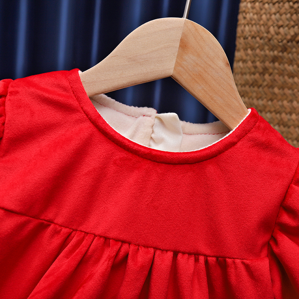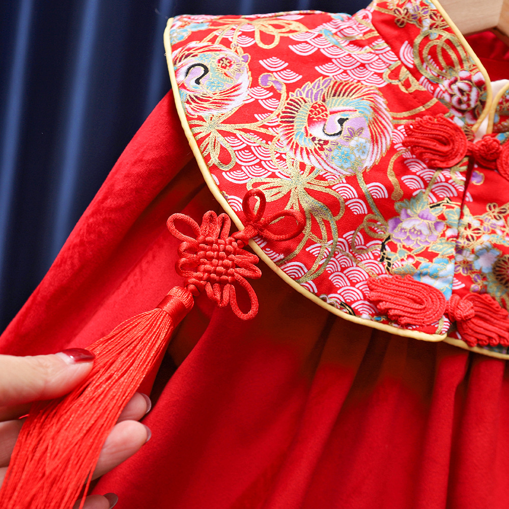 유행 귀여운 소녀의 기모 원피스 가을과 겨울 아기 1 세 원피스 외국 스타일 공주 중국 스타일 새해 복 많이 받으세요