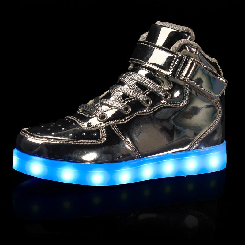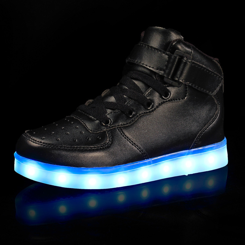 남녀 아동용 LED 발광 신발, 하이탑 USB 충전 라이트 신발, 운동화, 제조업체 도매/일괄 배송스토어 가기