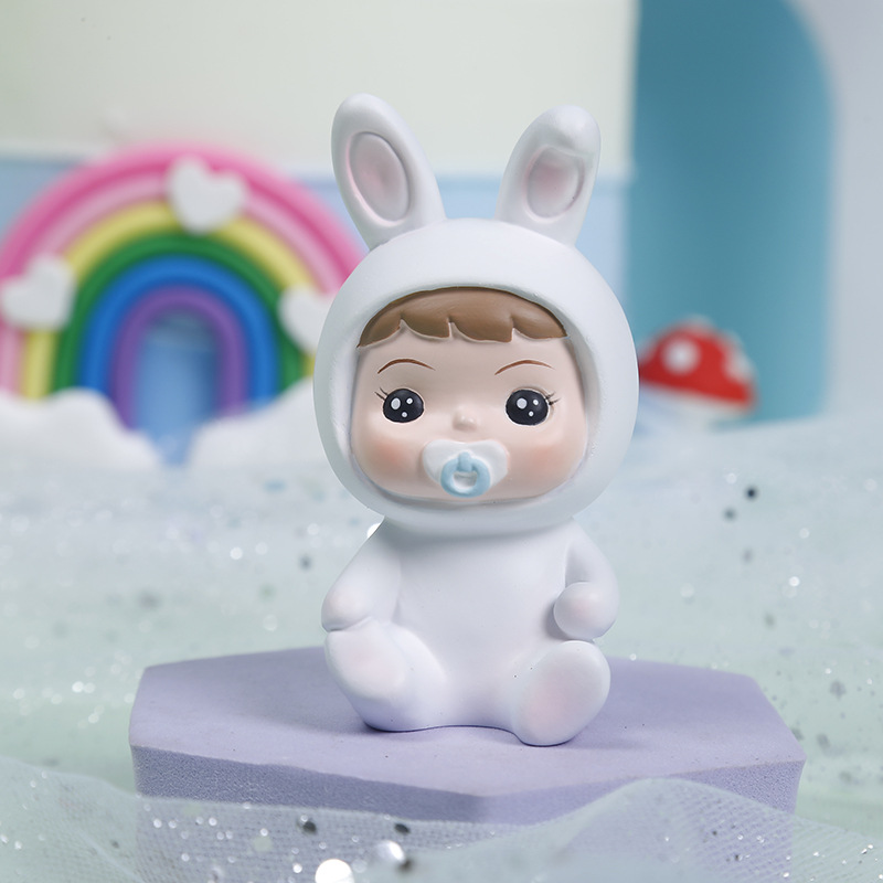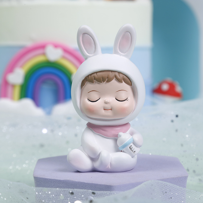 아기 토끼 장식품 아기 생일 케이크 베이킹 장식품 보름달 파티 디저트 테이블 장식 데스크탑 작은 장식품