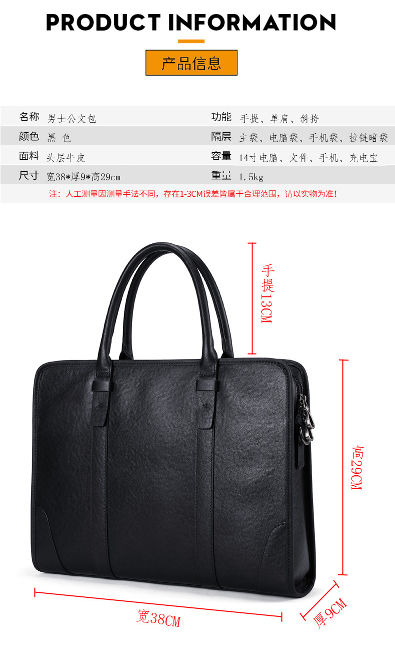 새로운 남자의 정품 가죽 핸드백 비즈니스 서류 가방 탑 레이어 소가죽 남성 가방 숄더 크로스 바디 백 컴퓨터 가방스토어 가기
