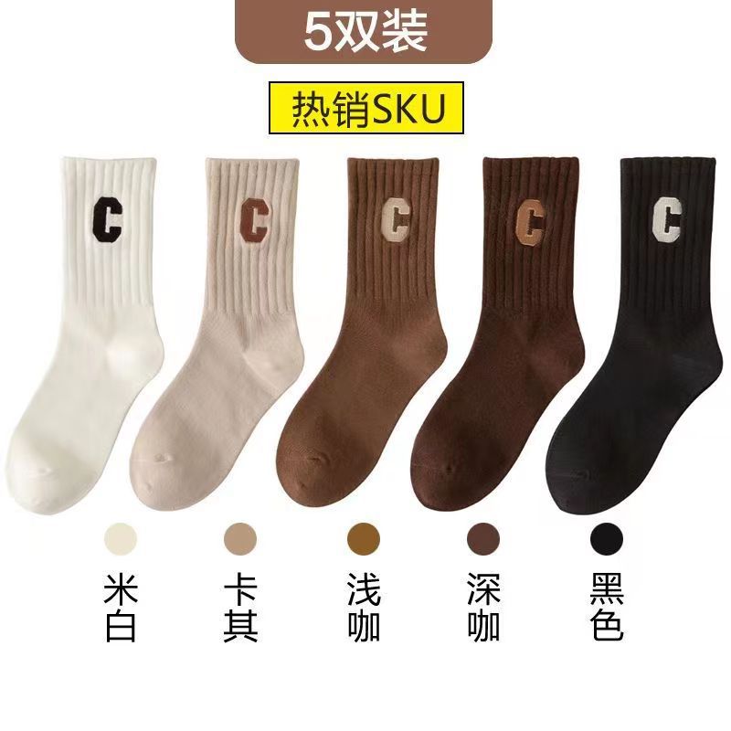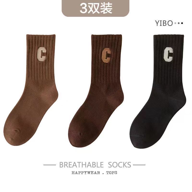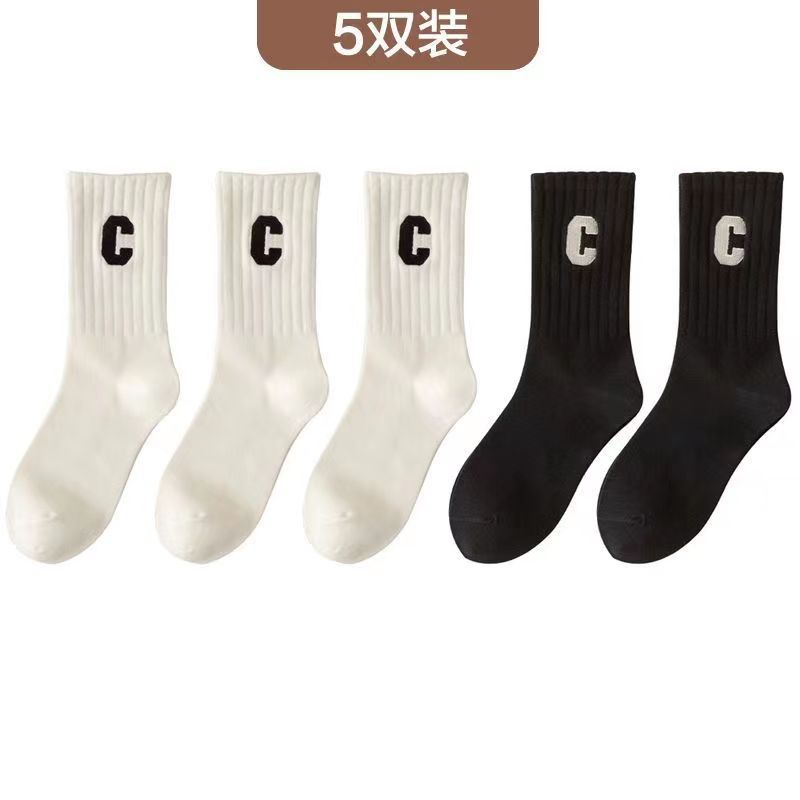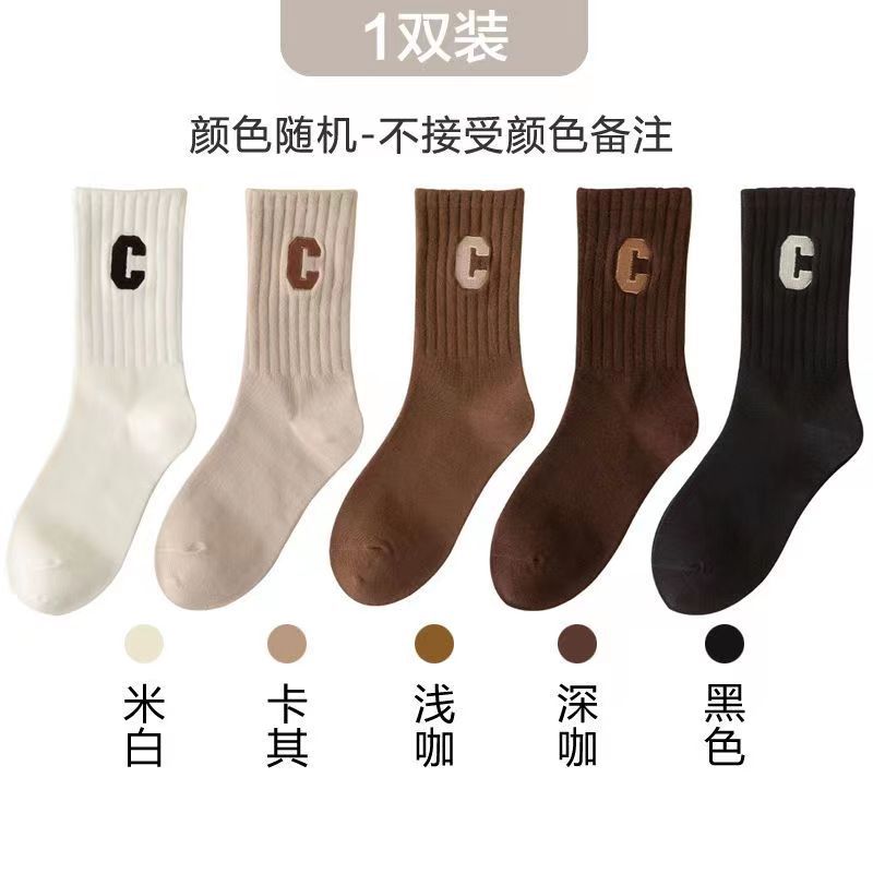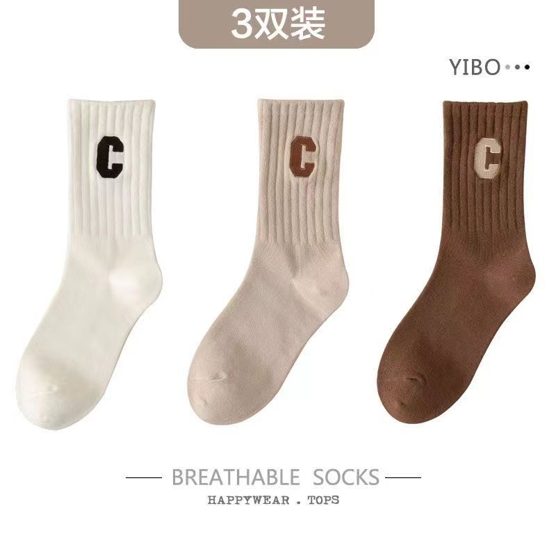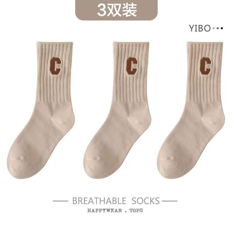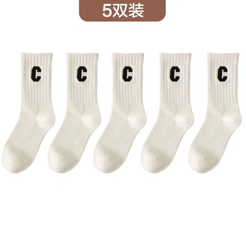 편지 양말 여성용 미드 튜브 양말 가을 순면 봄과 가을 조수 메쉬 적외선 착용 스포츠 하이 튜브 스타킹