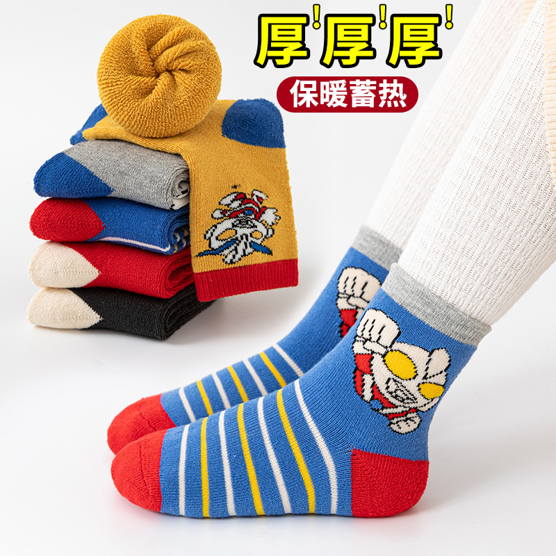 아기 양말 가을과 겨울 테리 두꺼운 튜브 두꺼운 만화 소년과 소녀 두꺼운 따뜻한 양말 도매